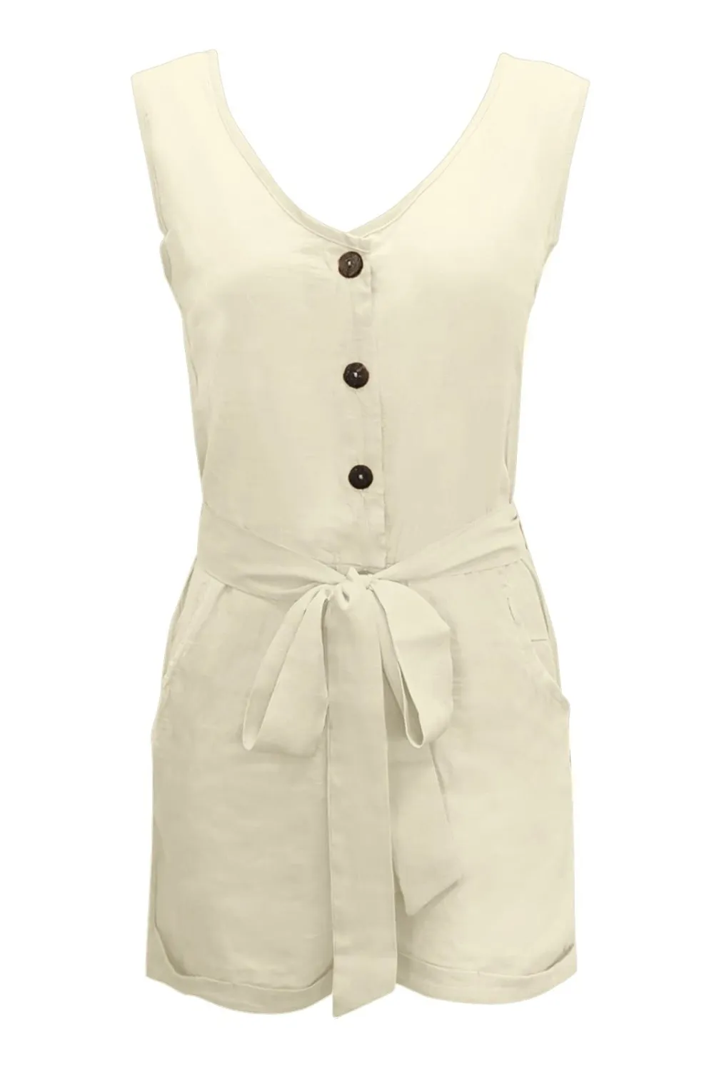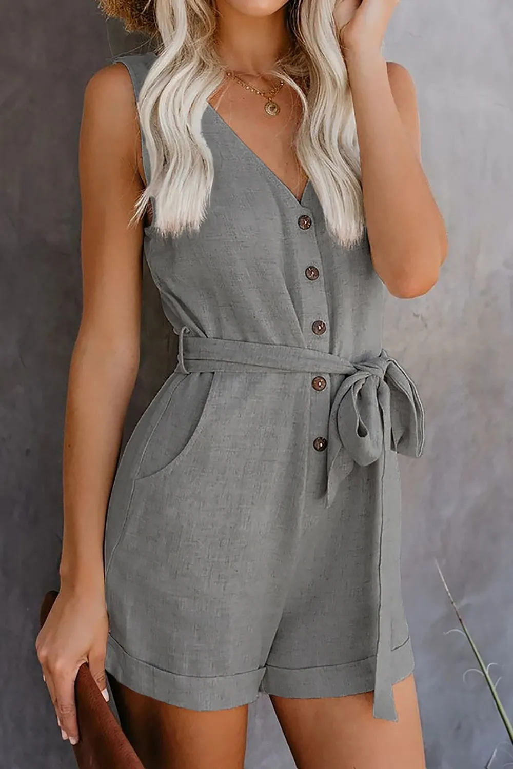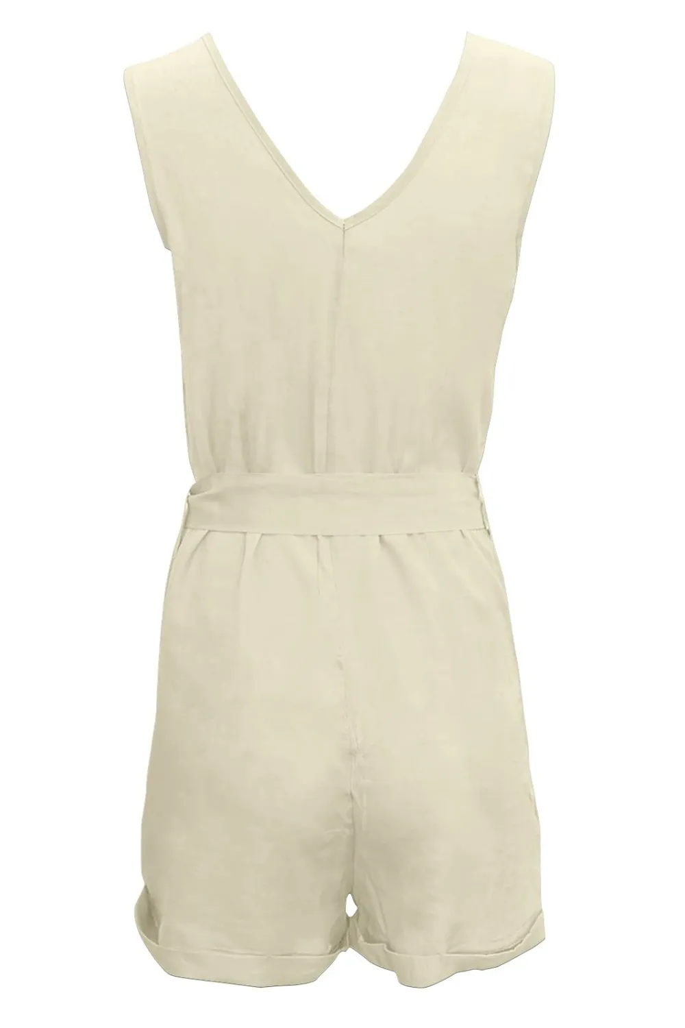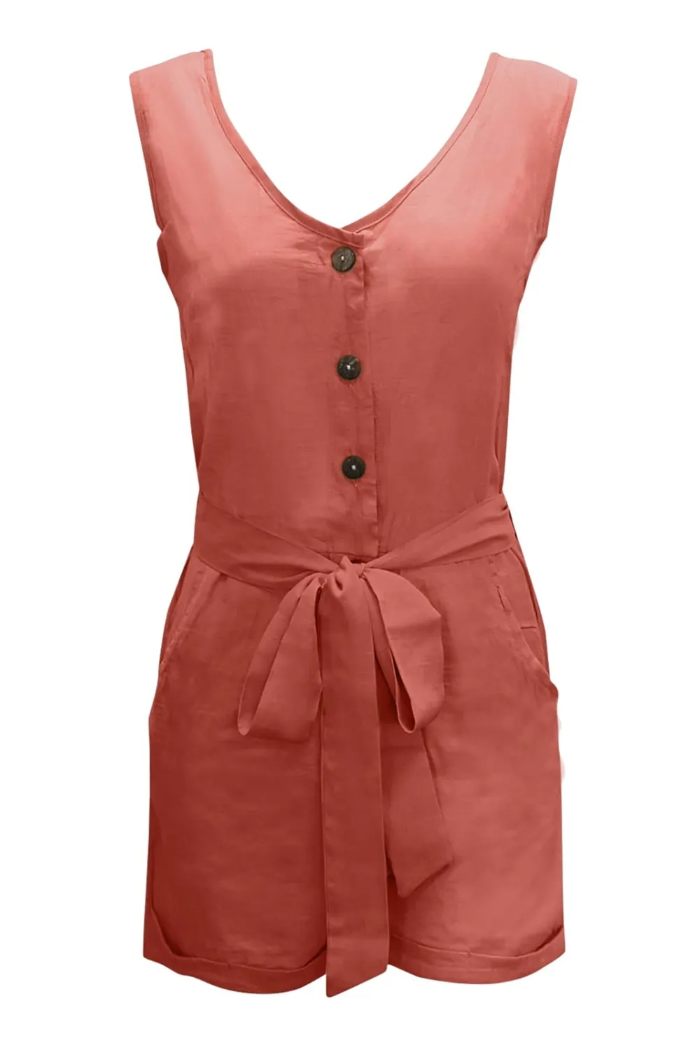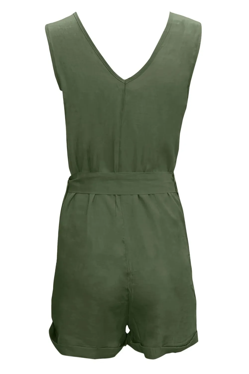 Full Size Tied V-Neck Sleeveless Romper With Pockets