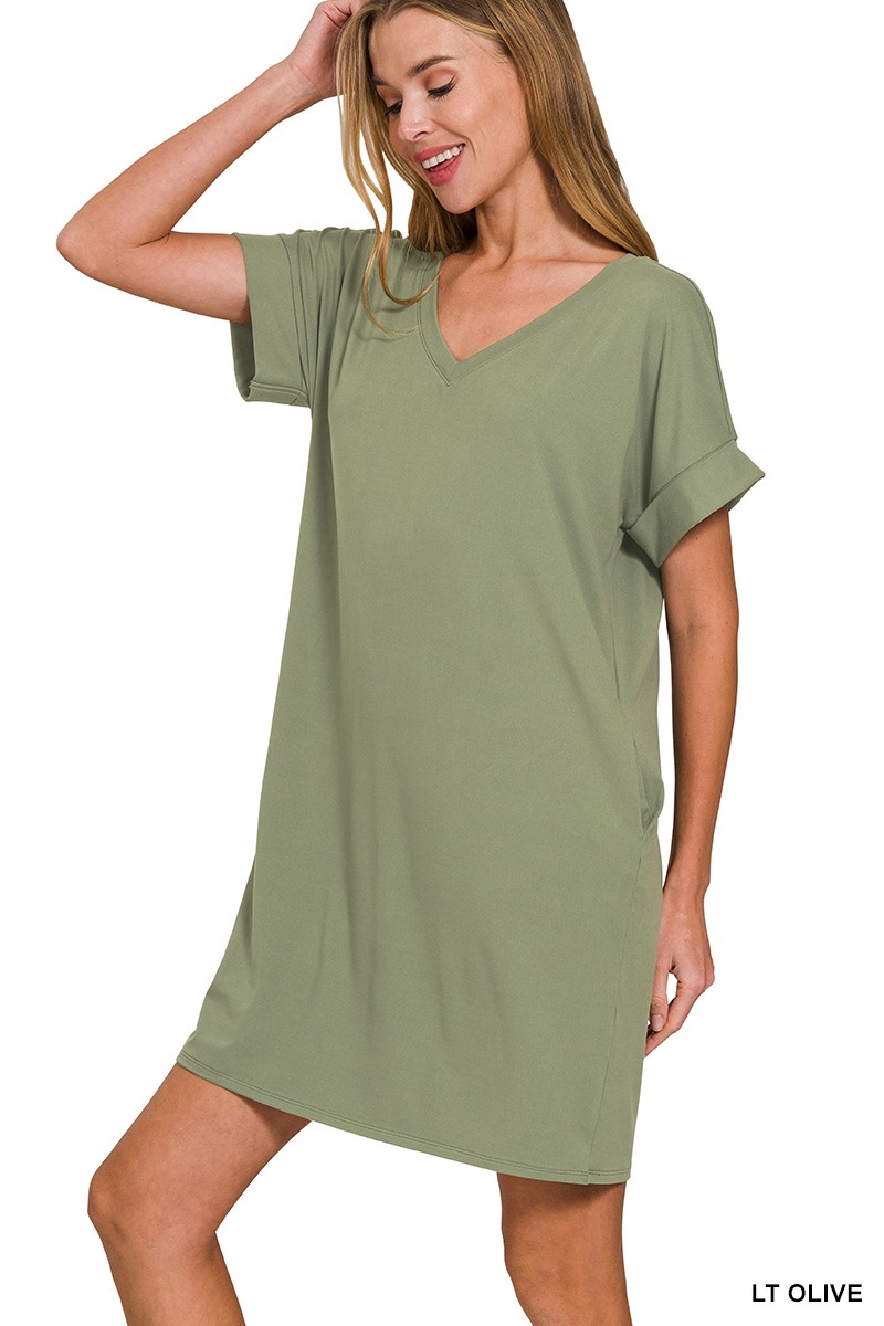 Zenana Brushed Dty Rolled Short Sleeve V-Neck Dress