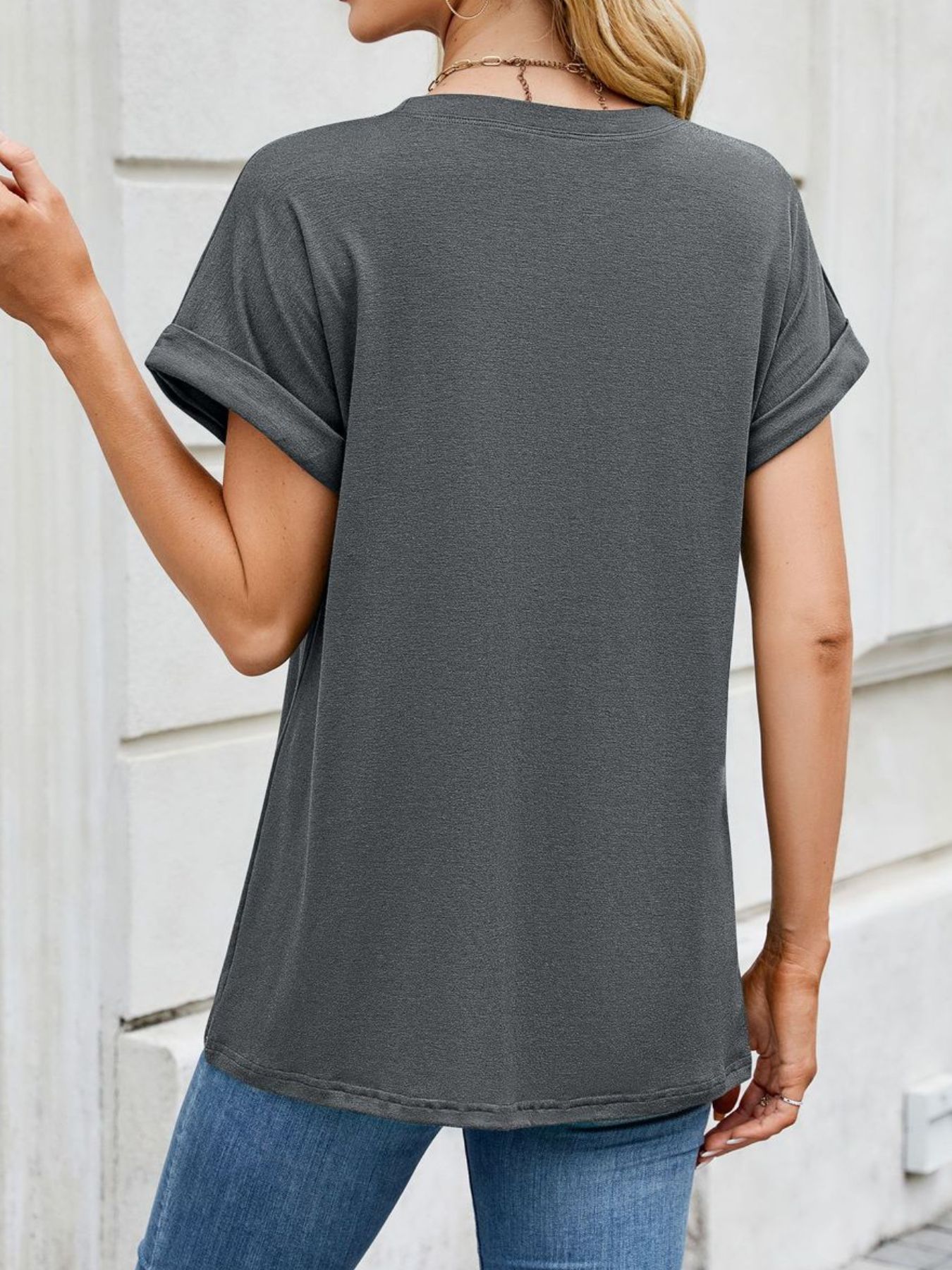Casual Rolled Sleeve Solid Color T-Shirt