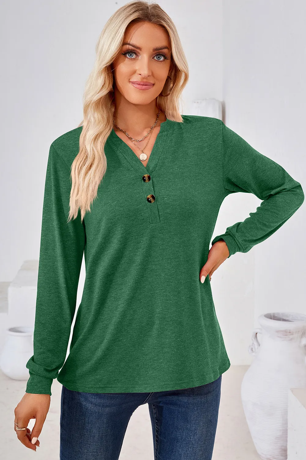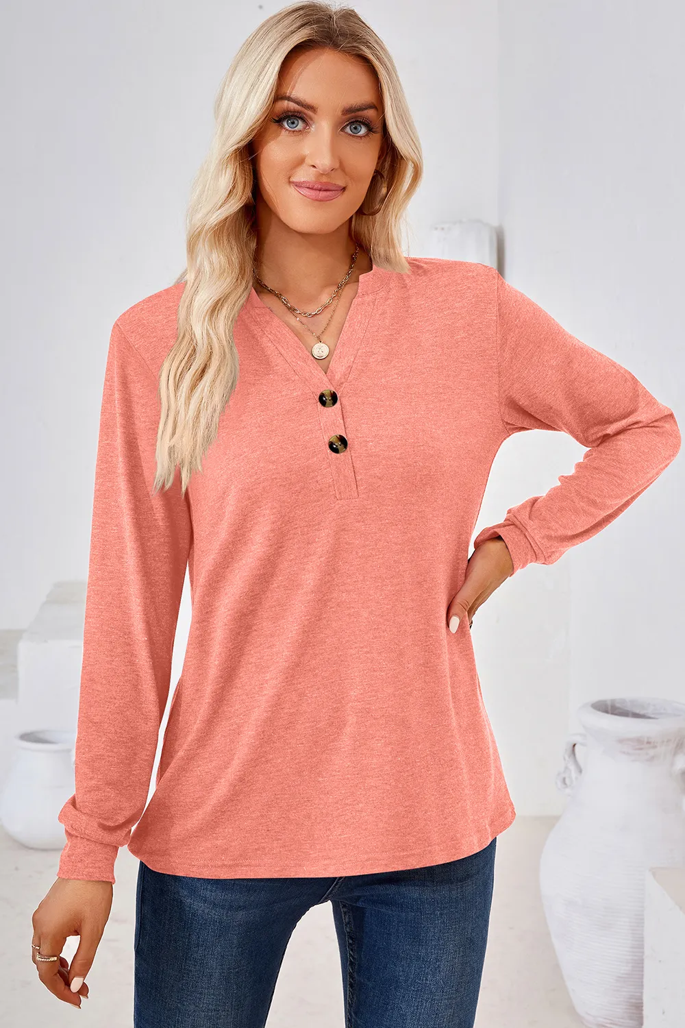 Notched Long Sleeve T-Shirt