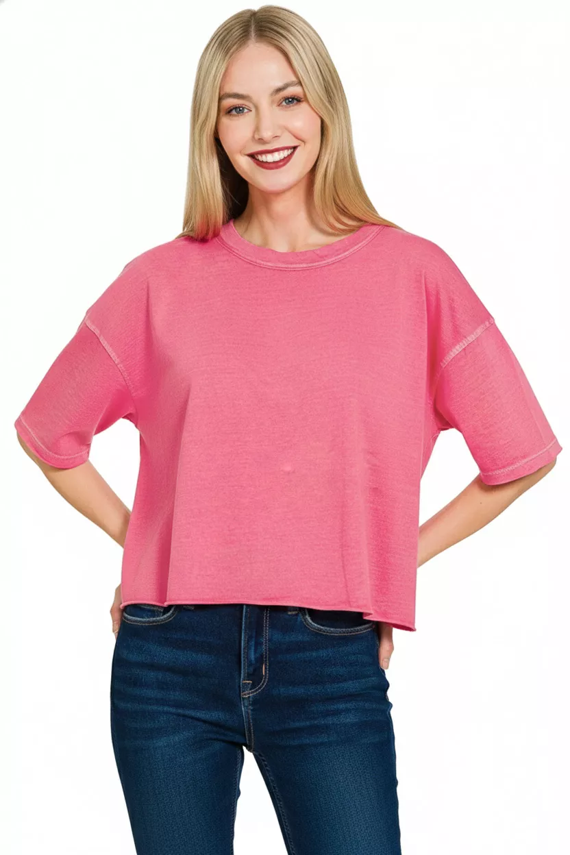 Zenana Pigment Dye & Enzyme Washed Oversized Crop Box Tee