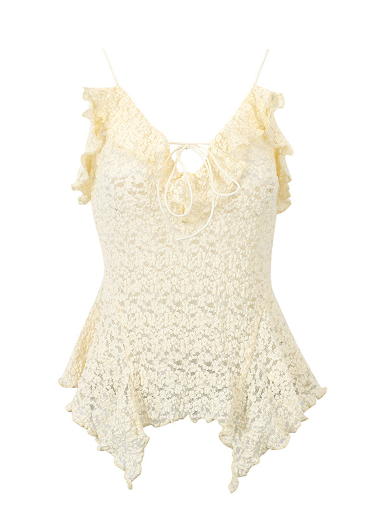 Lace Ruffle Trim Tie-Front Cami