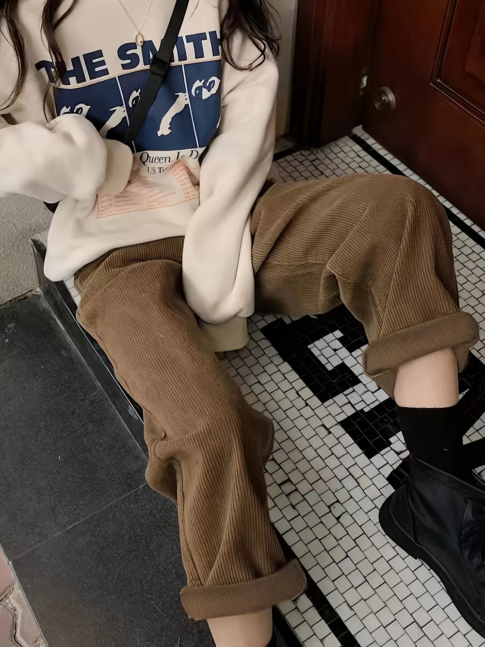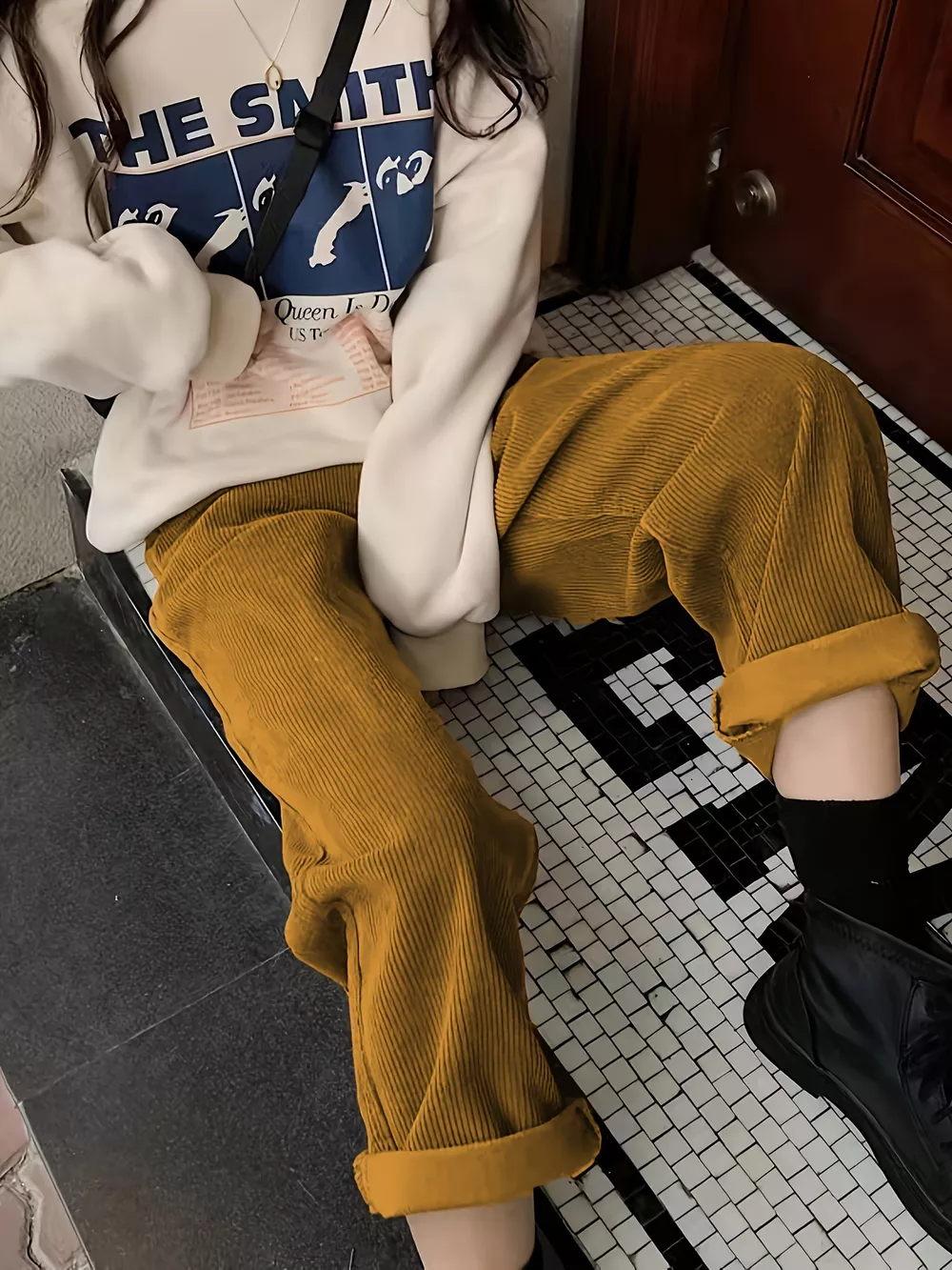Full Size Vintage Corduroy Wide Leg Pants Plus Size