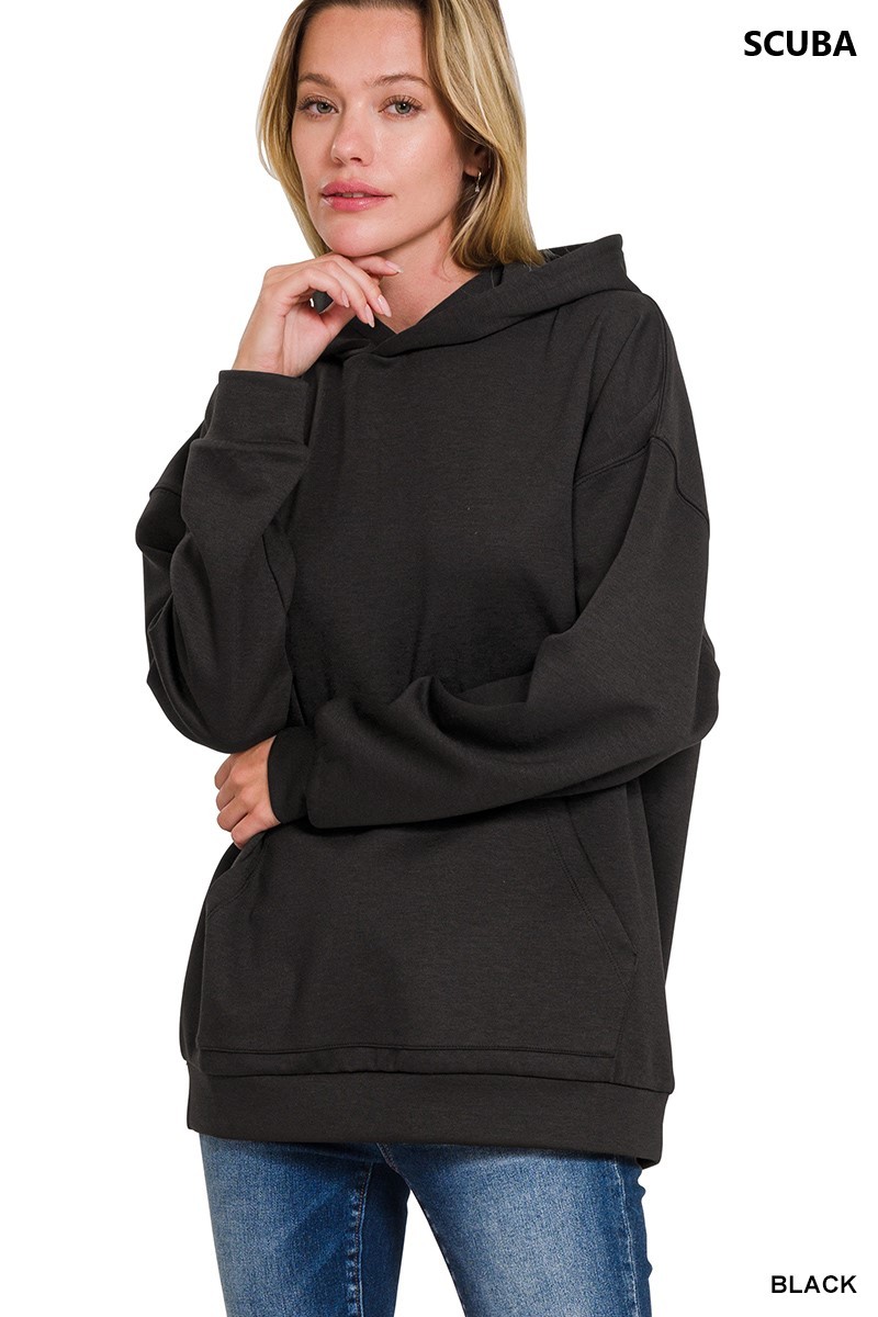 Zenana Oversized Scuba Hoodie With Kangaroo Pocket