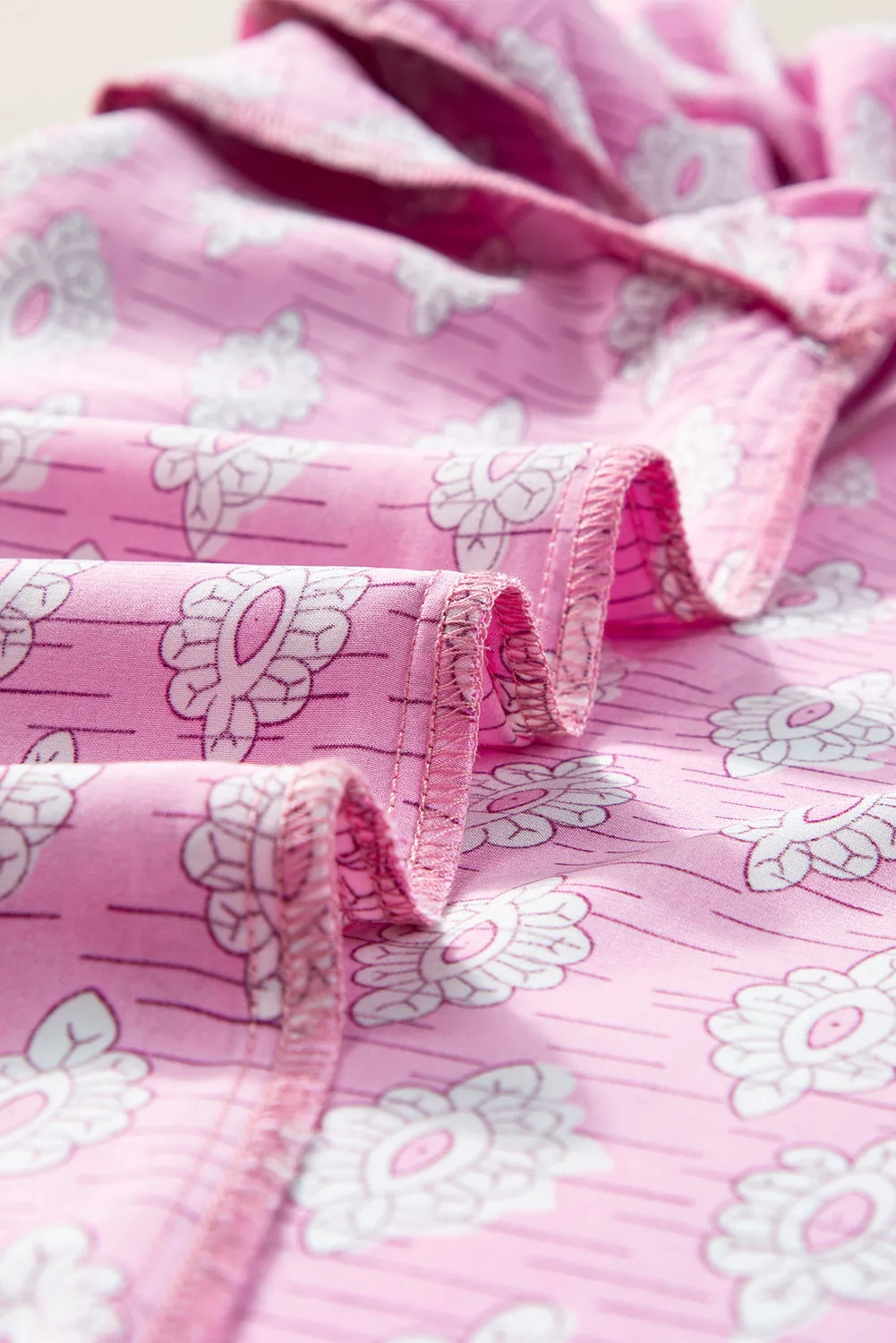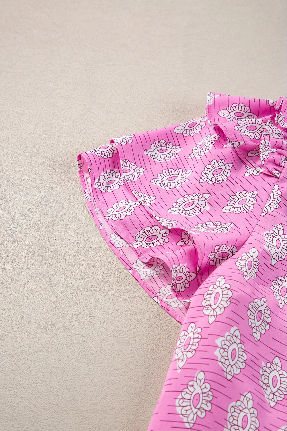 Ruffled Printed Tie Neck Short Sleeve Blouse