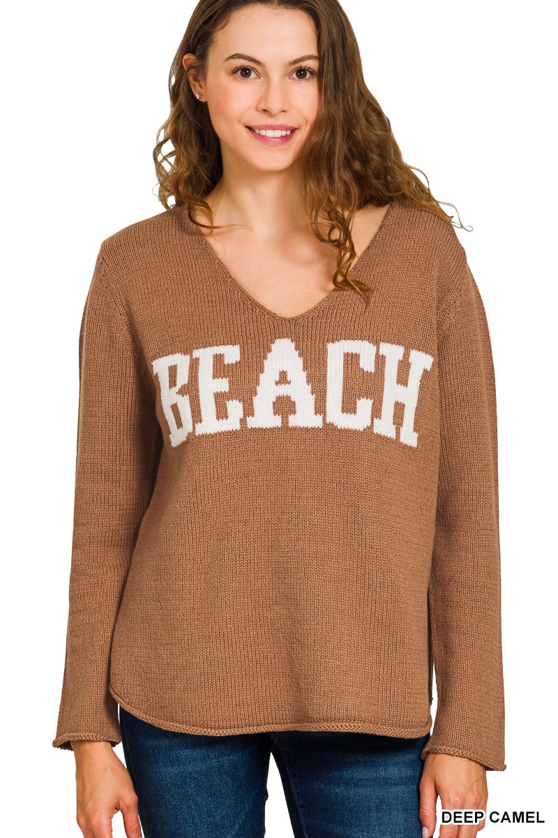 Zenana Beach V Neck Sweater