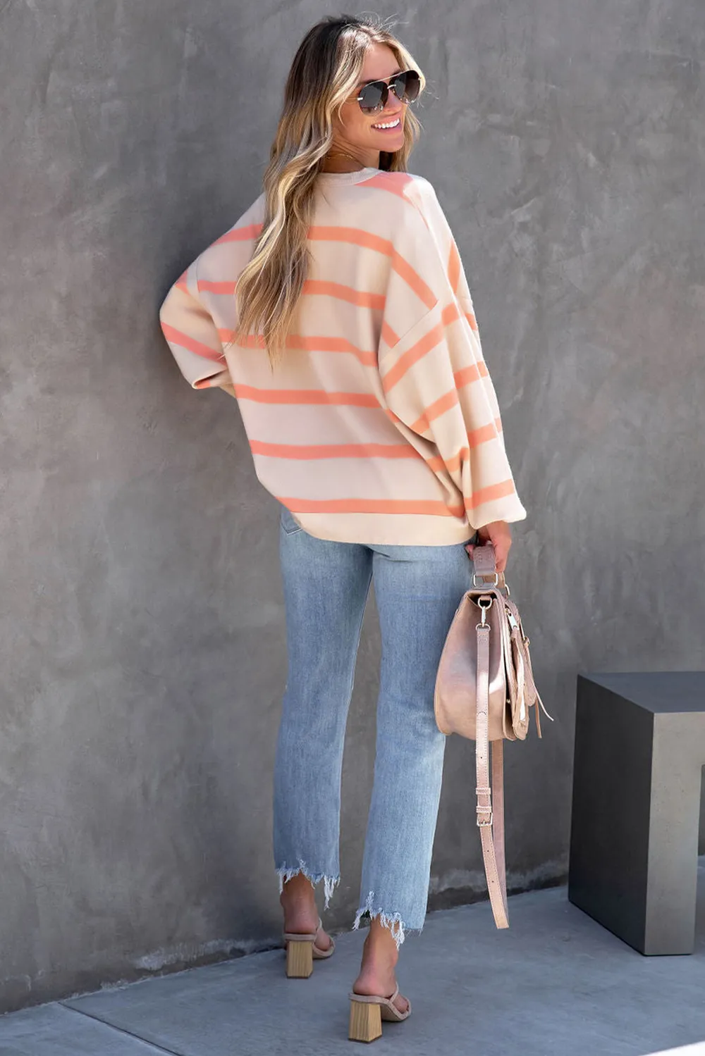 Striped Round Neck Dropped Shoulder Sweatshirt