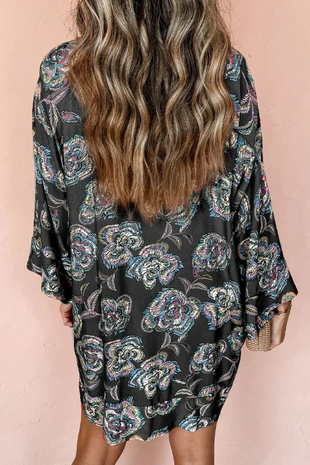 Printed Button Up Three-Quarter Sleeve Shirt Dress