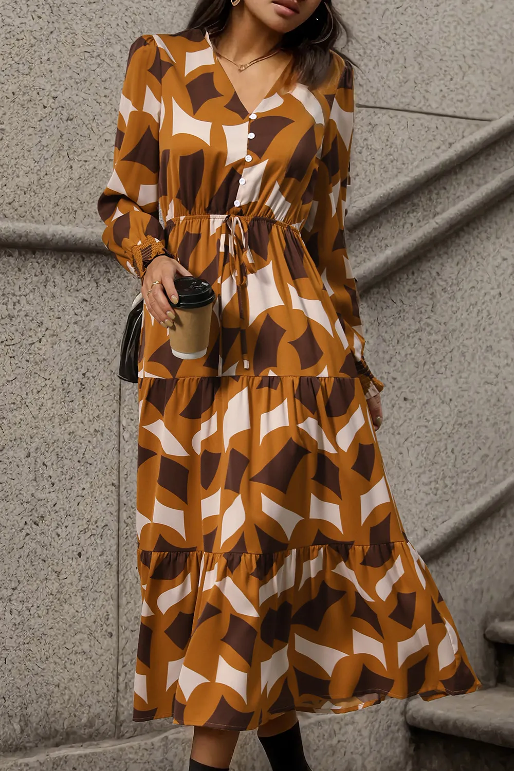 Perfee Printed Tied Pocketed Lantern Sleeve Dress