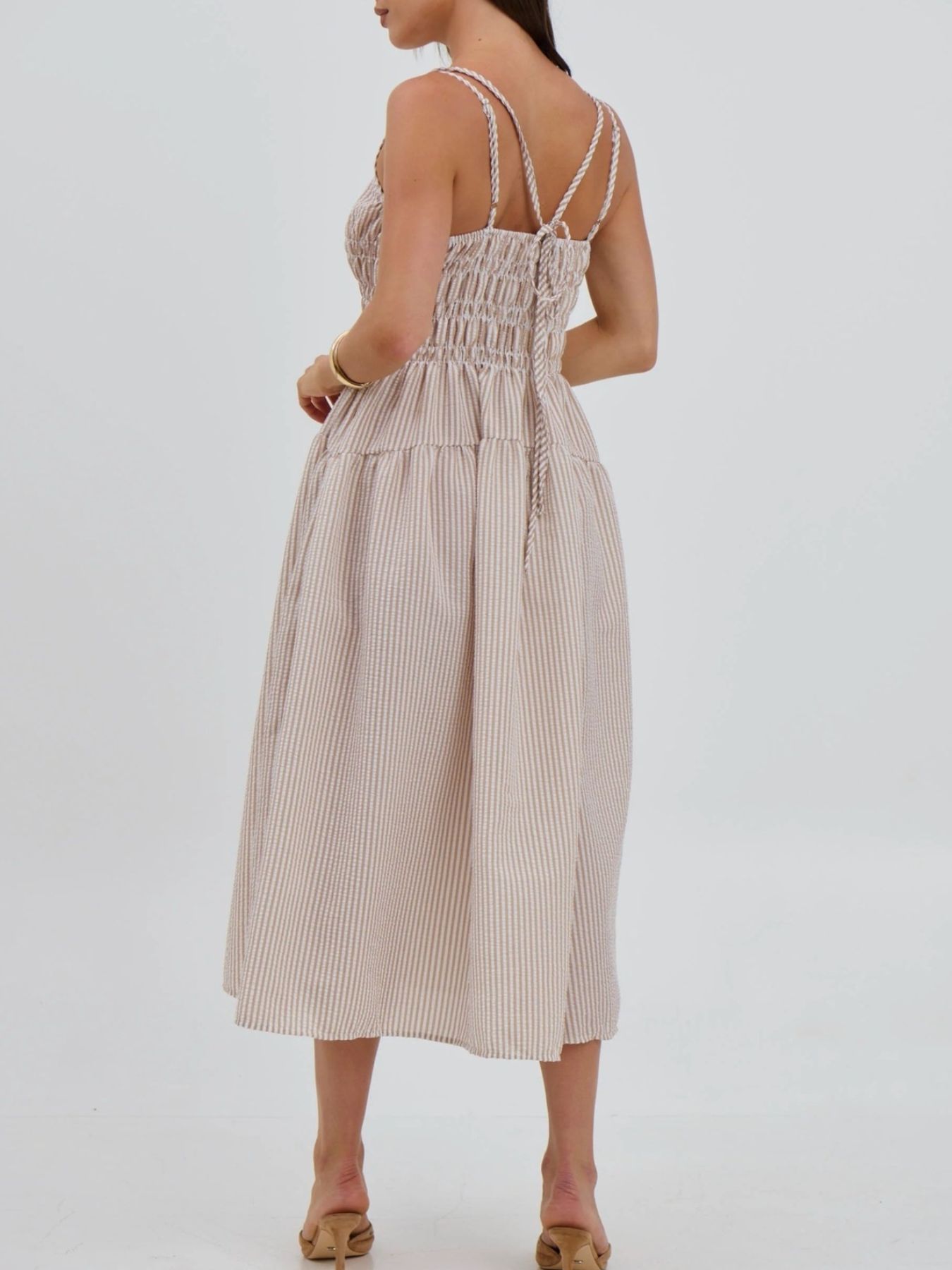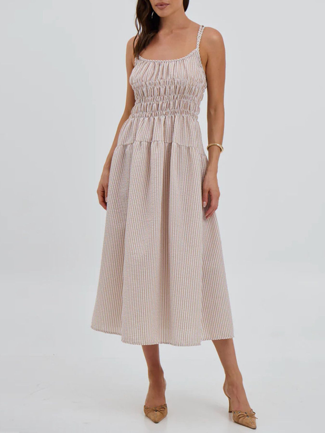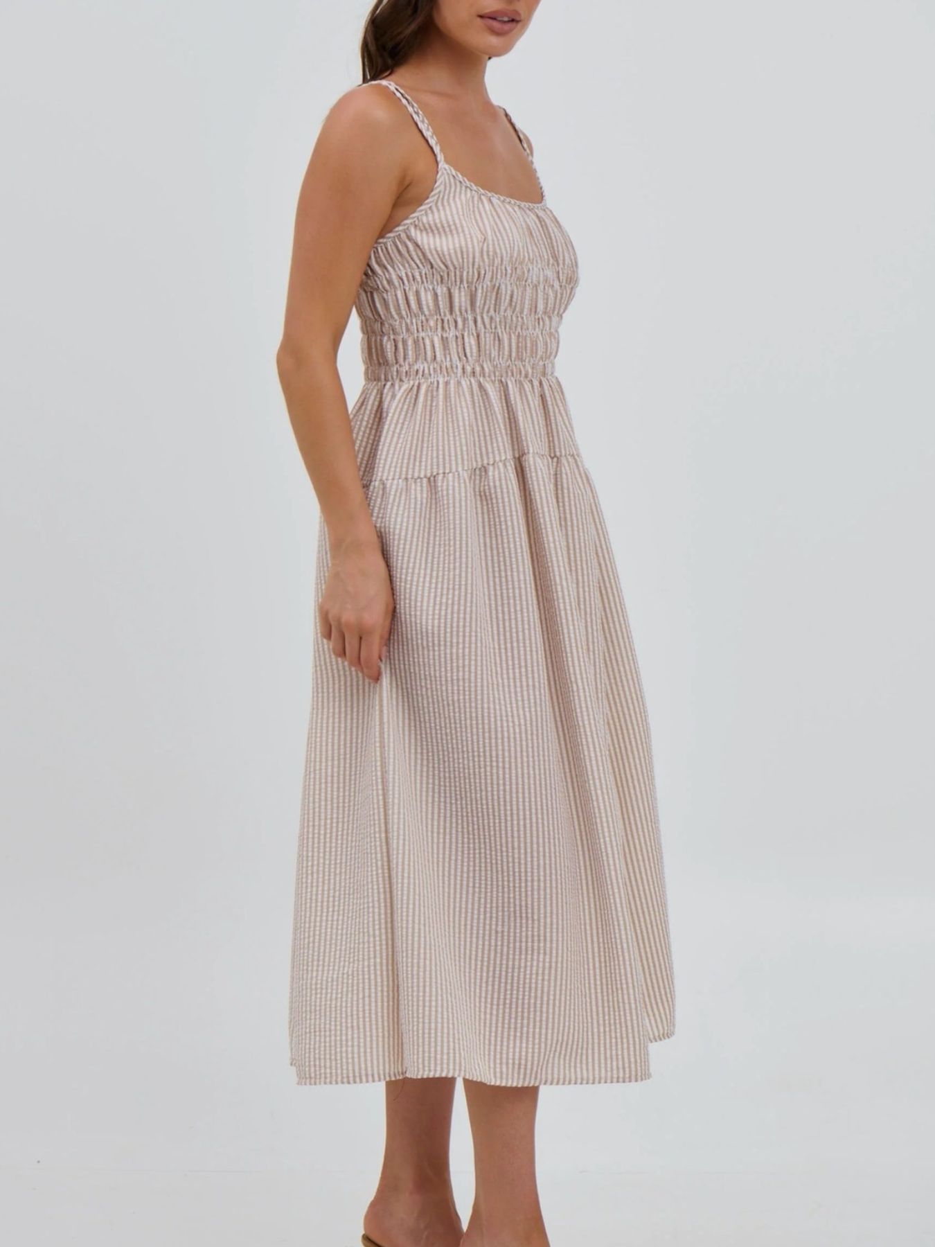 Striped Smocked Bodice Midi Dress