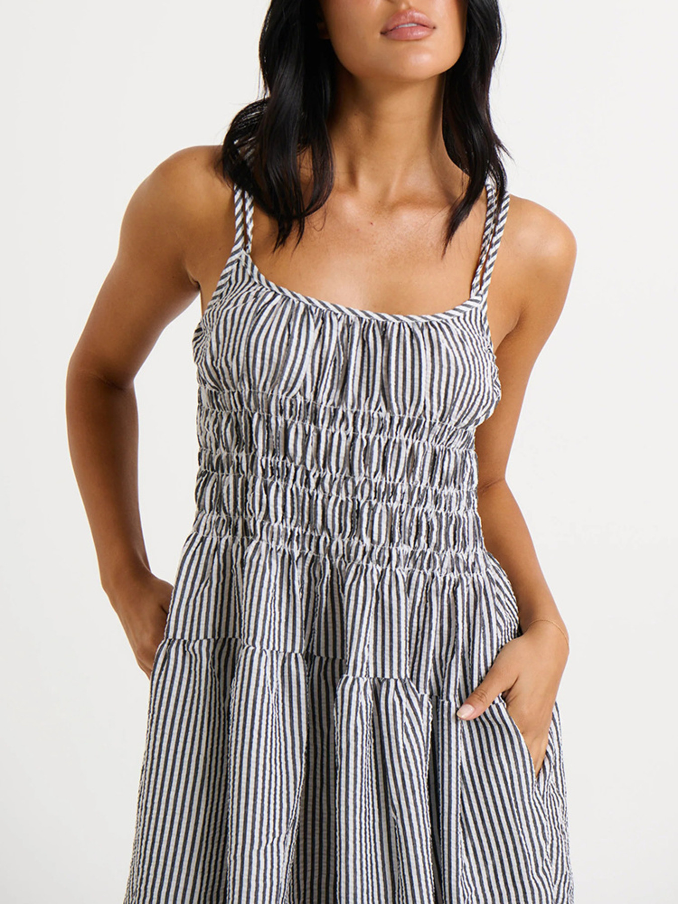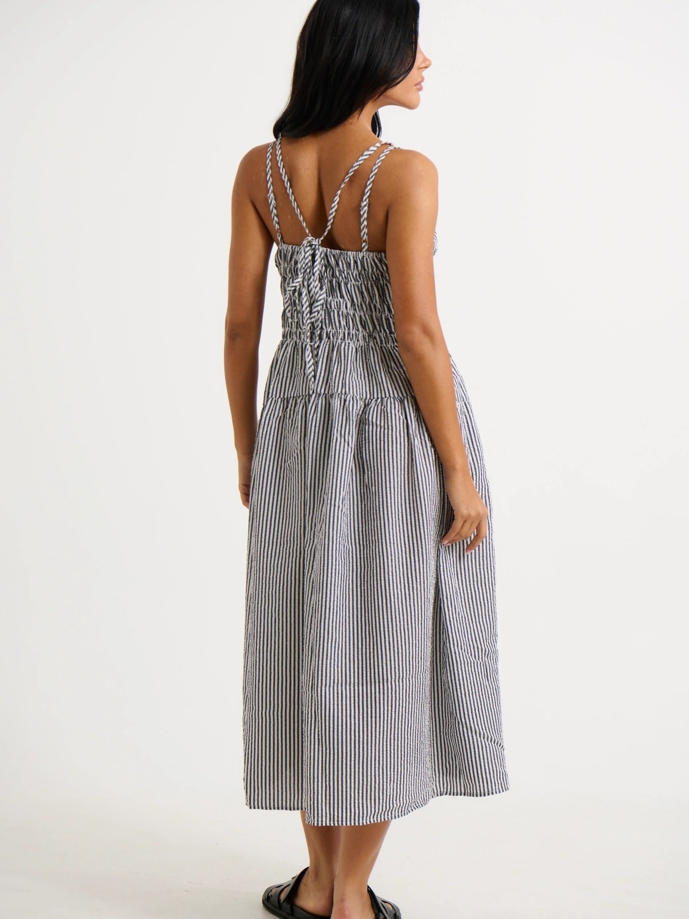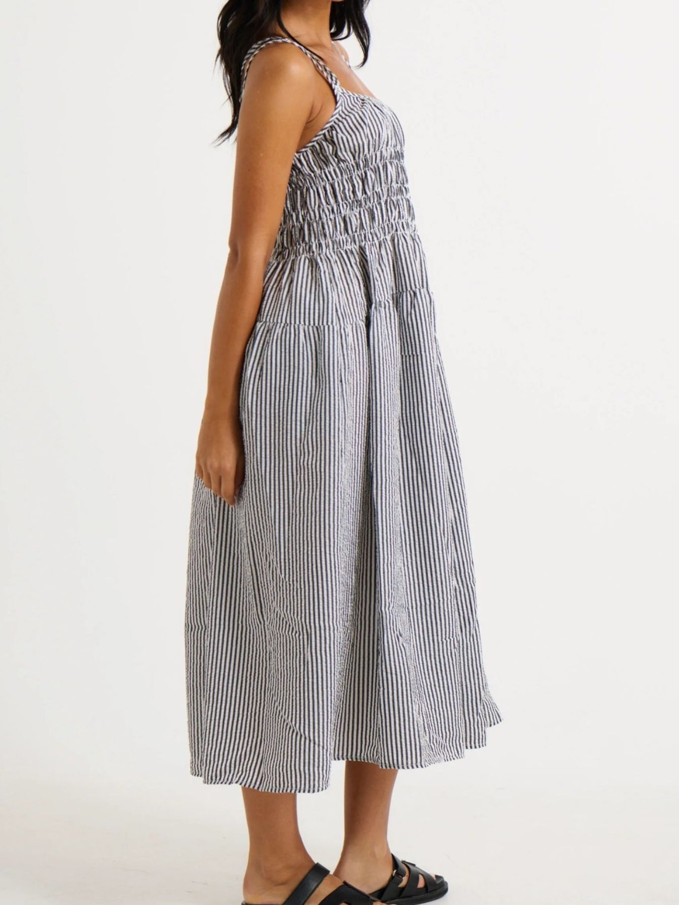 Striped Smocked Bodice Midi Dress