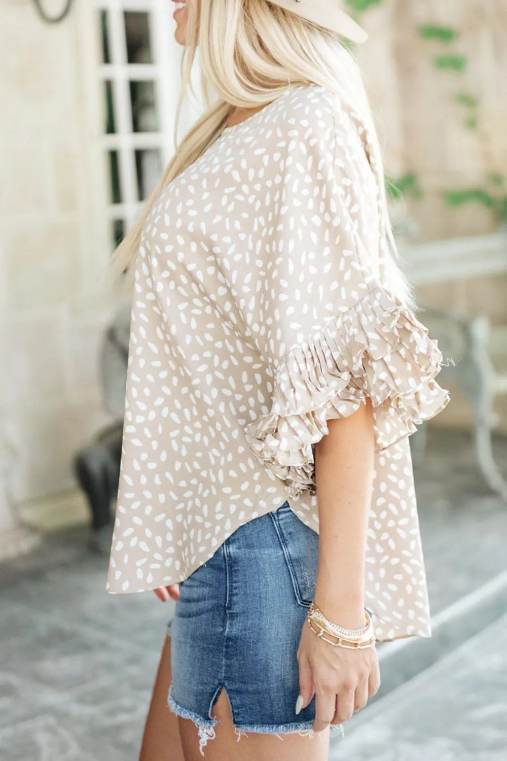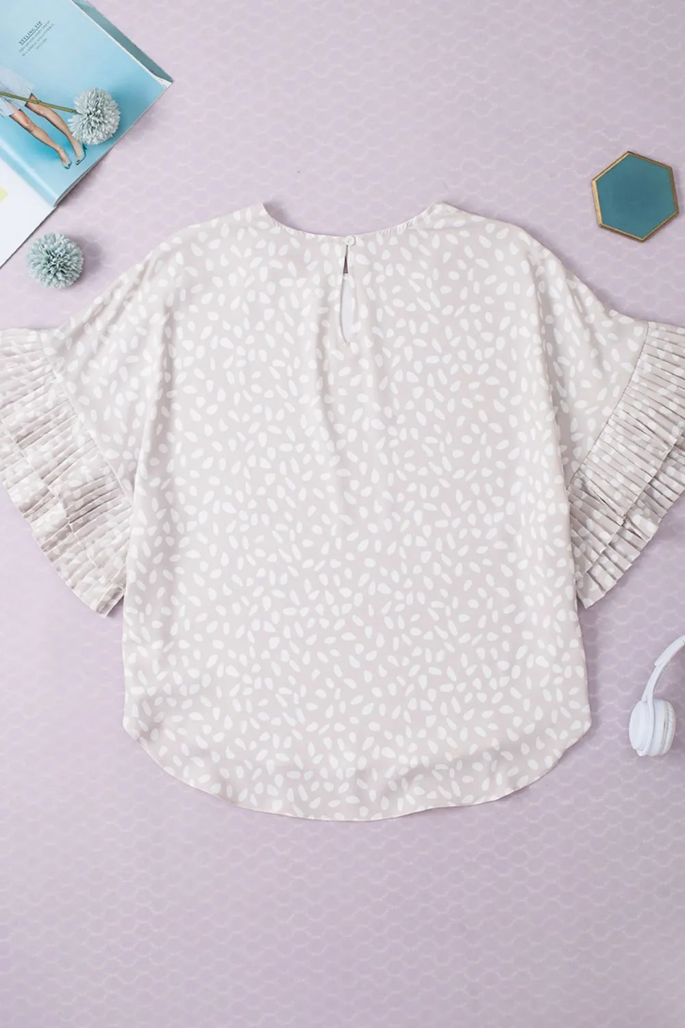 Printed Round Neck Ruffled Half Sleeve Blouse