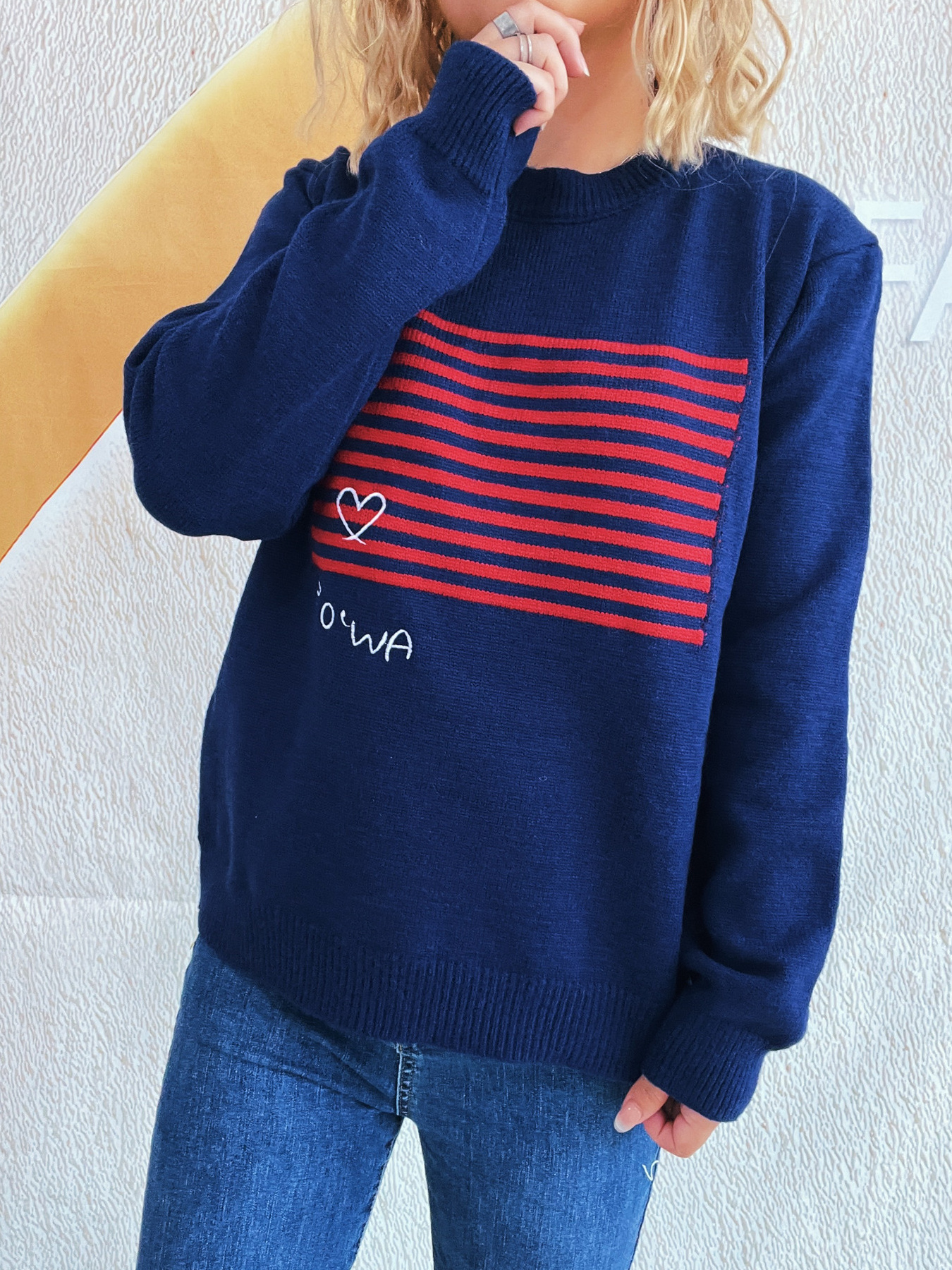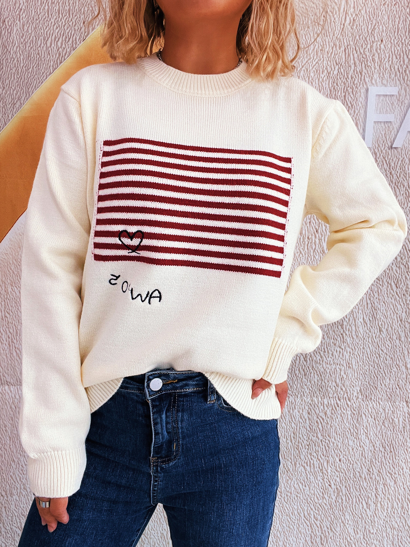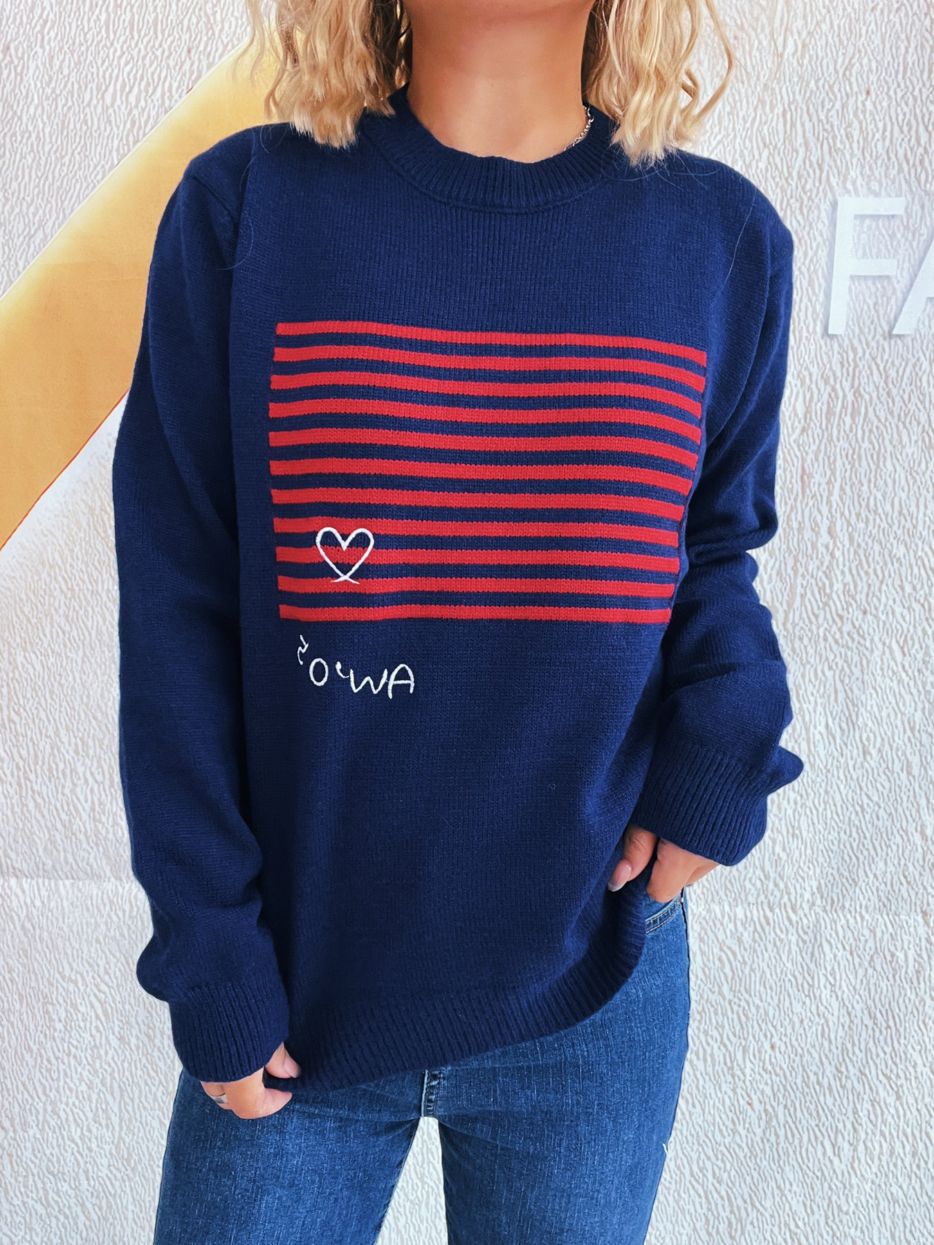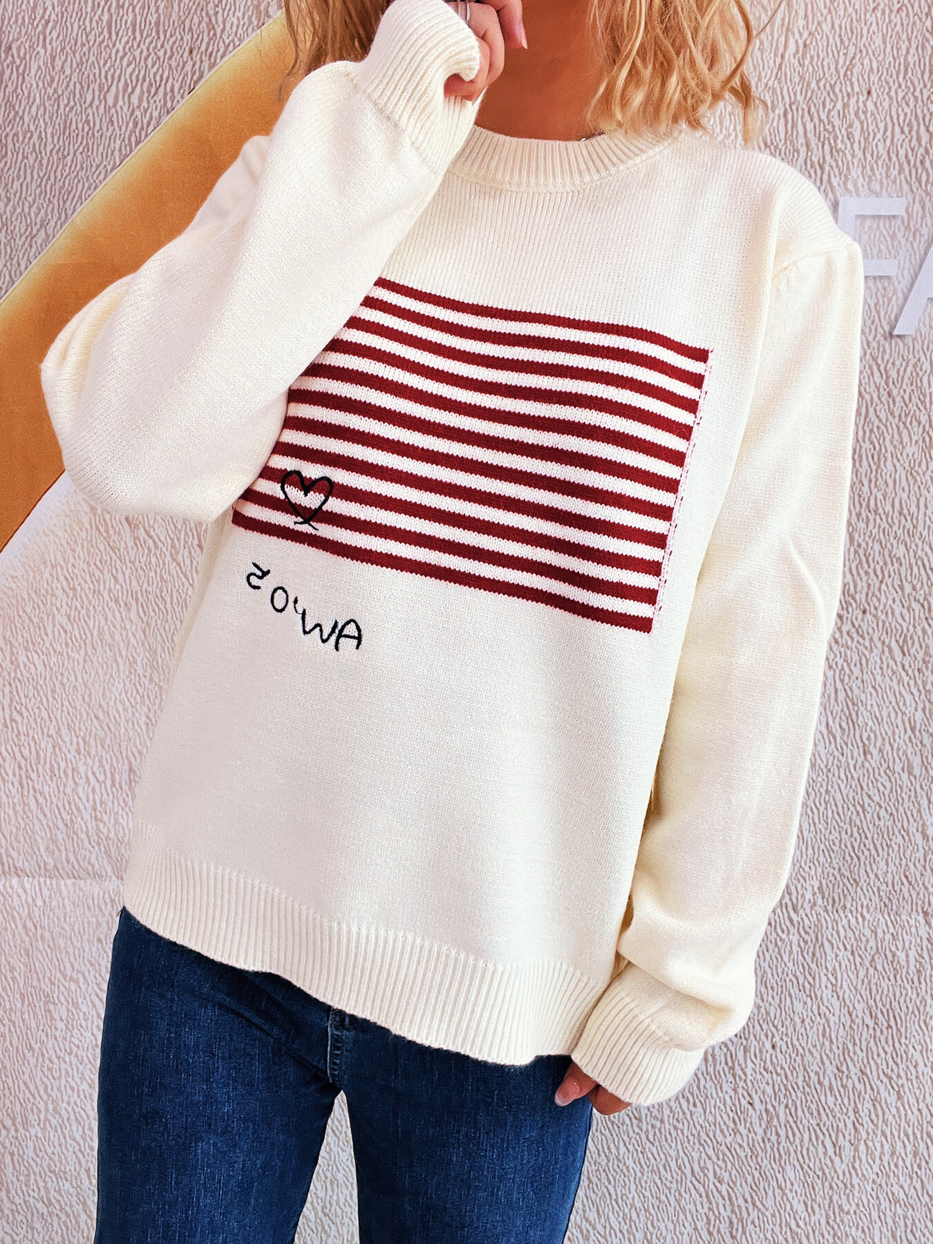 Striped Round Neck Long Sleeve Sweater