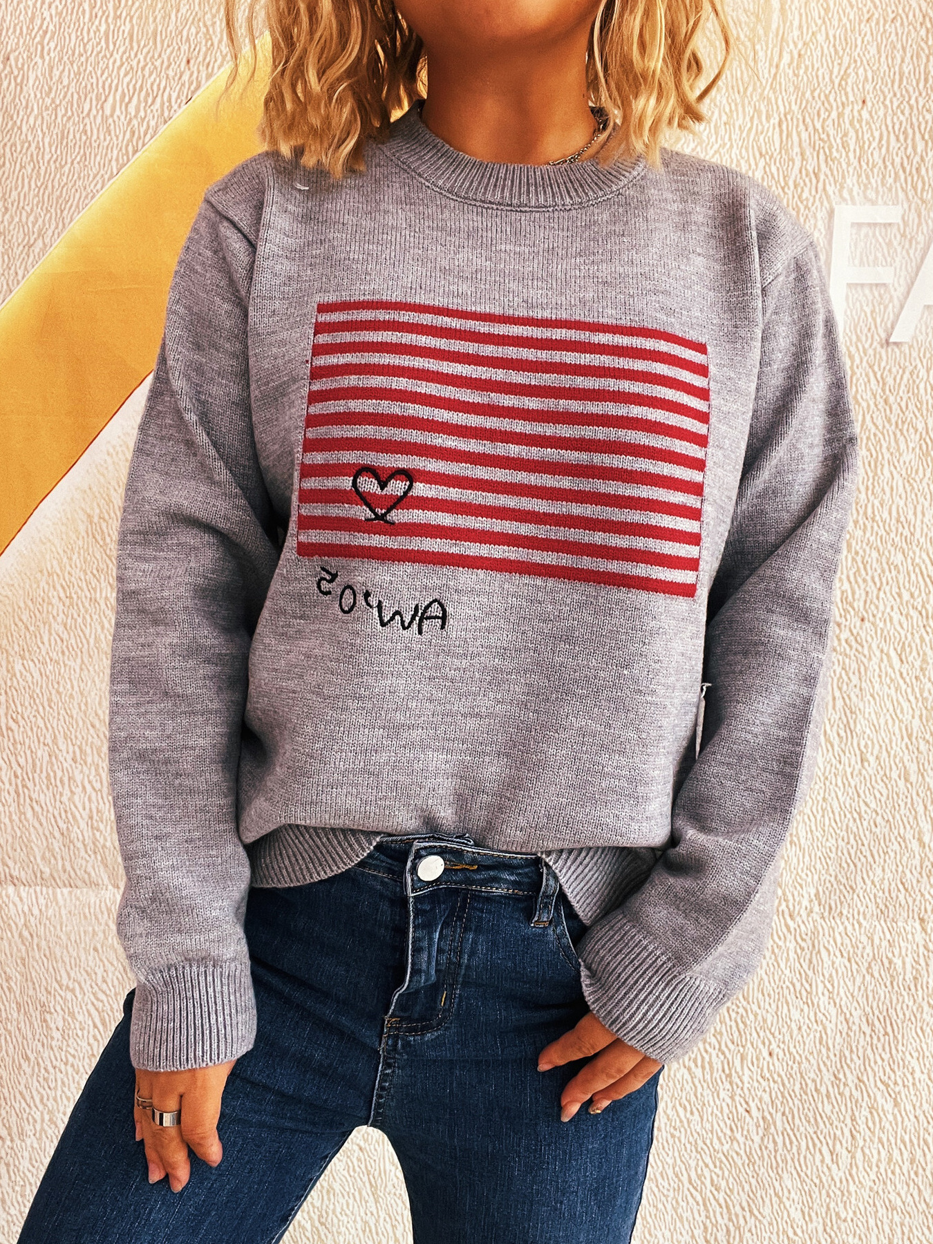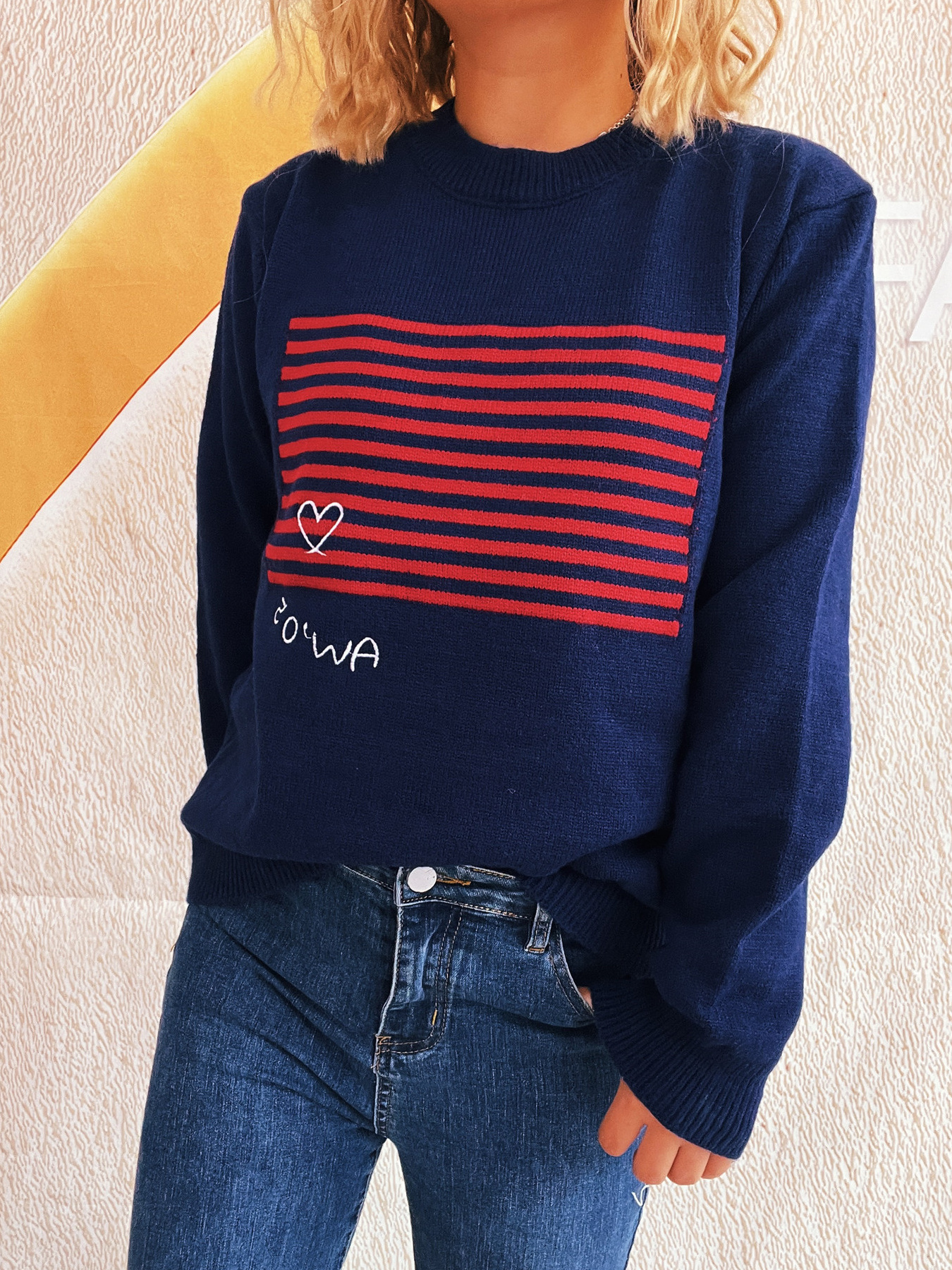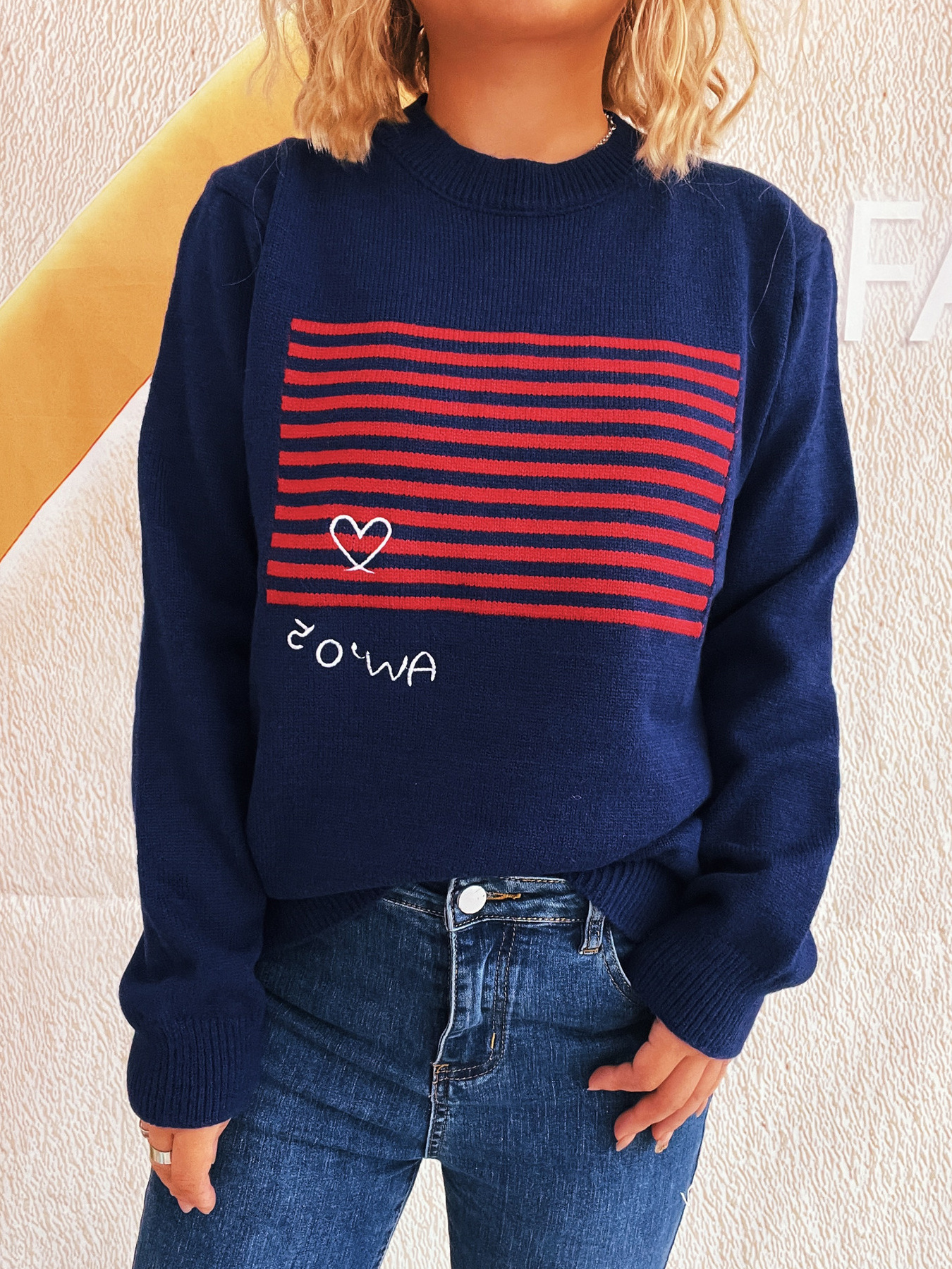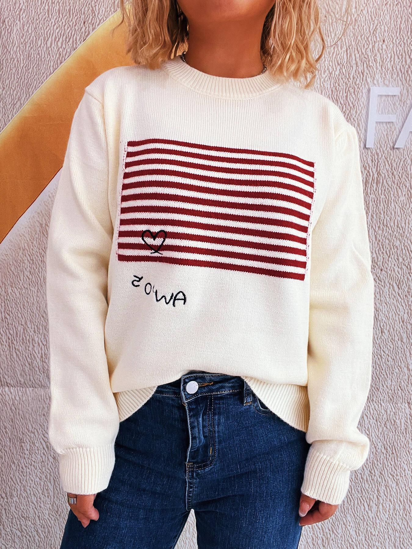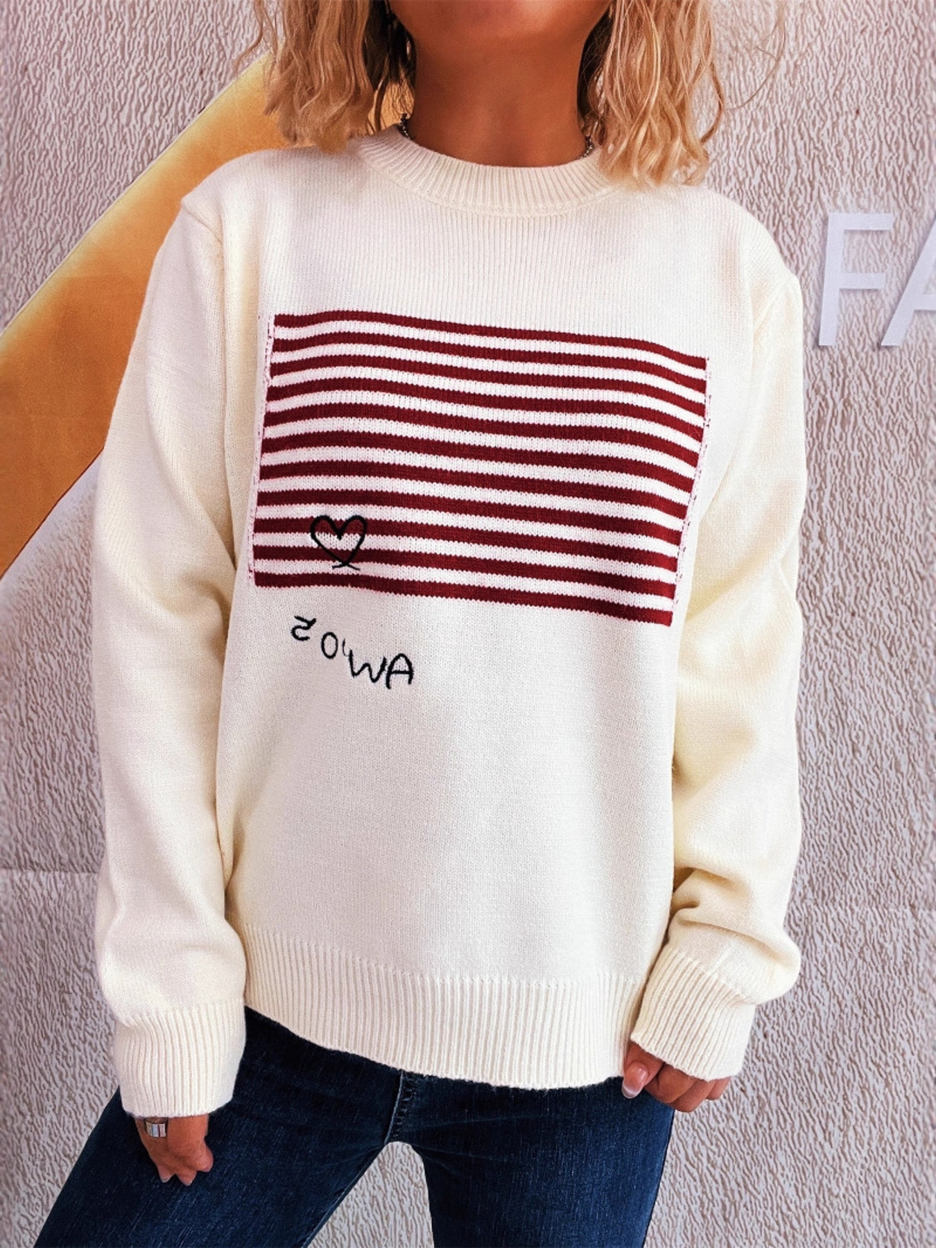 Striped Round Neck Long Sleeve Sweater