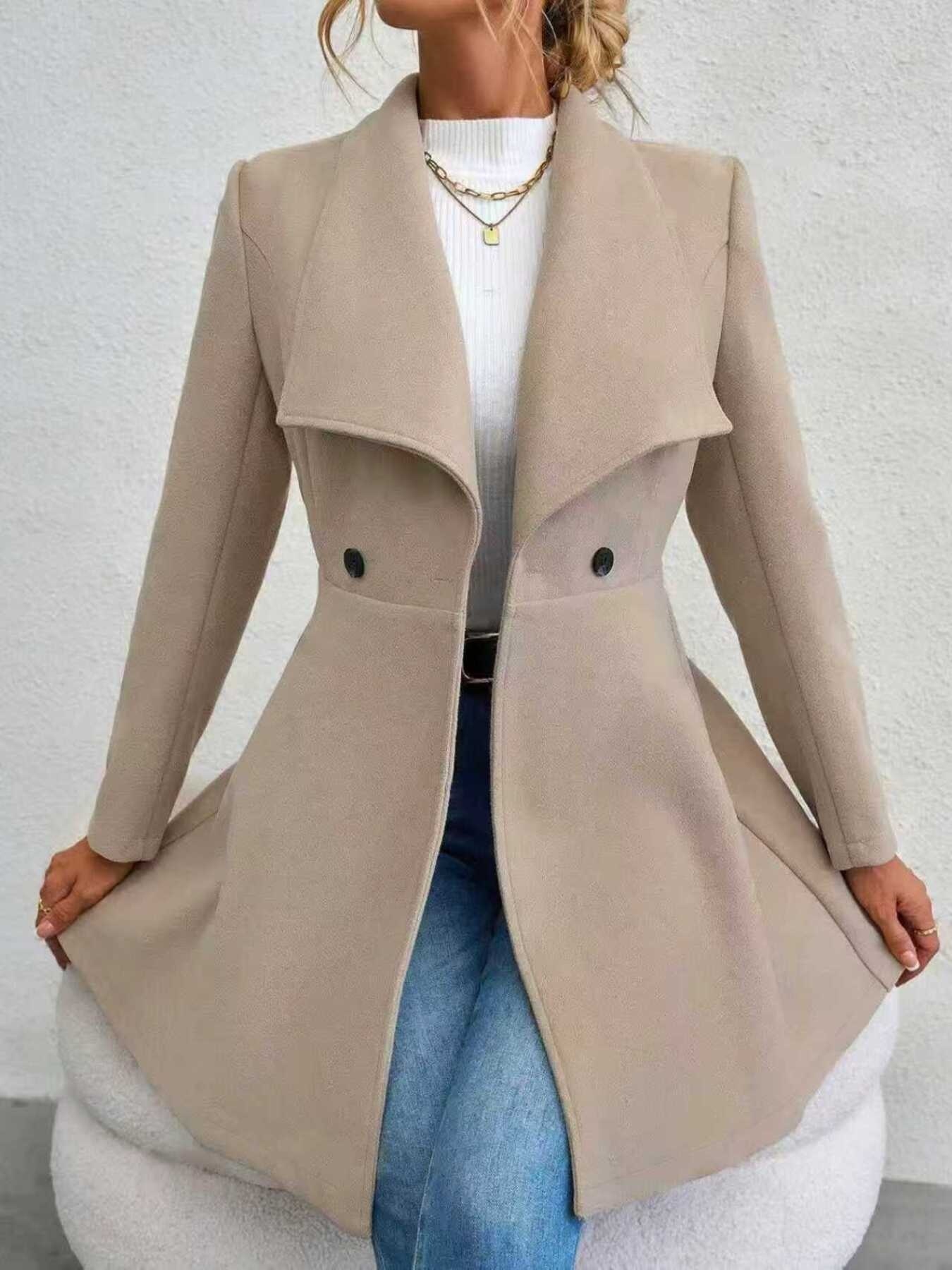 Double-Breasted Wool Blend Coat