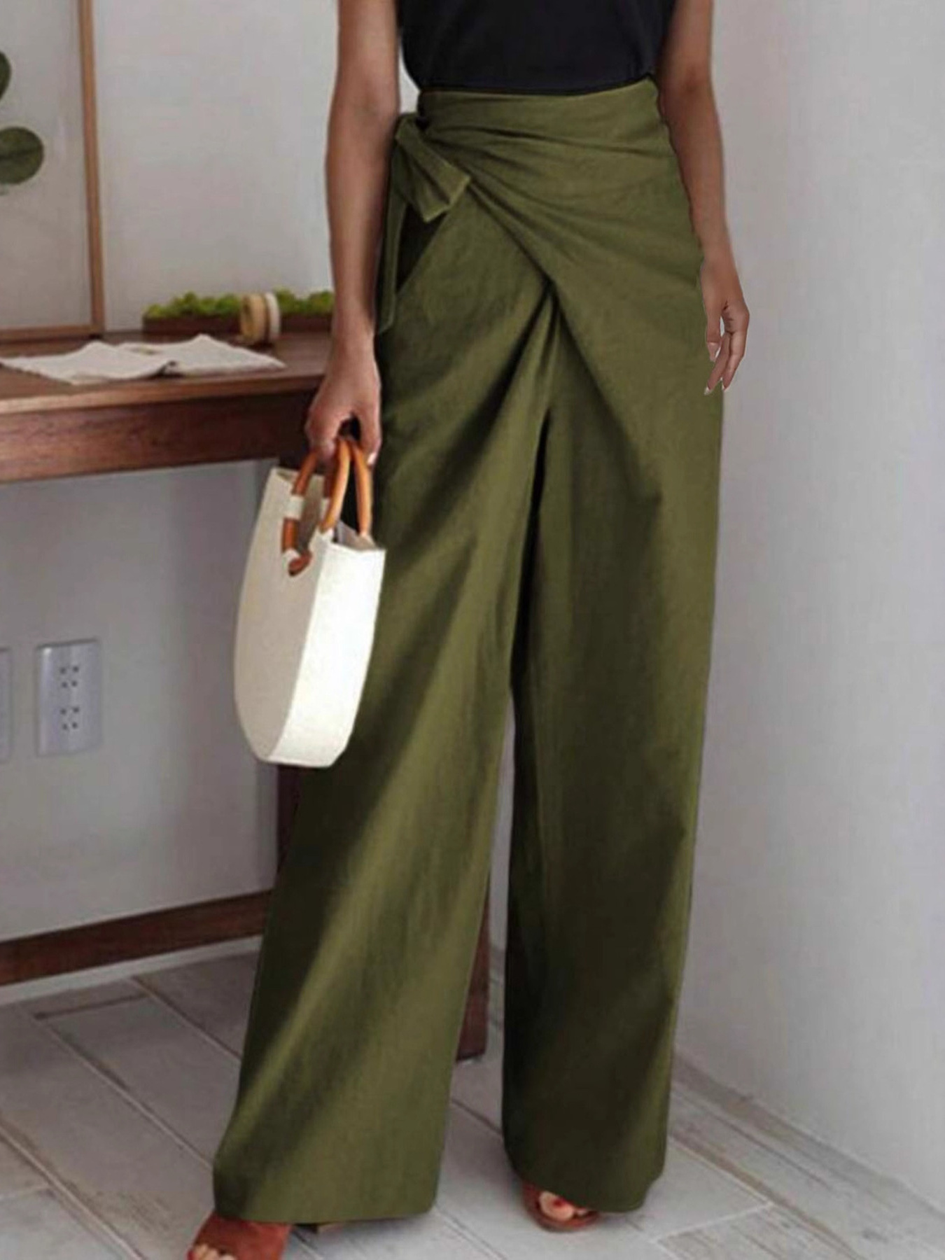 Wrap Waist Wide Leg Pants