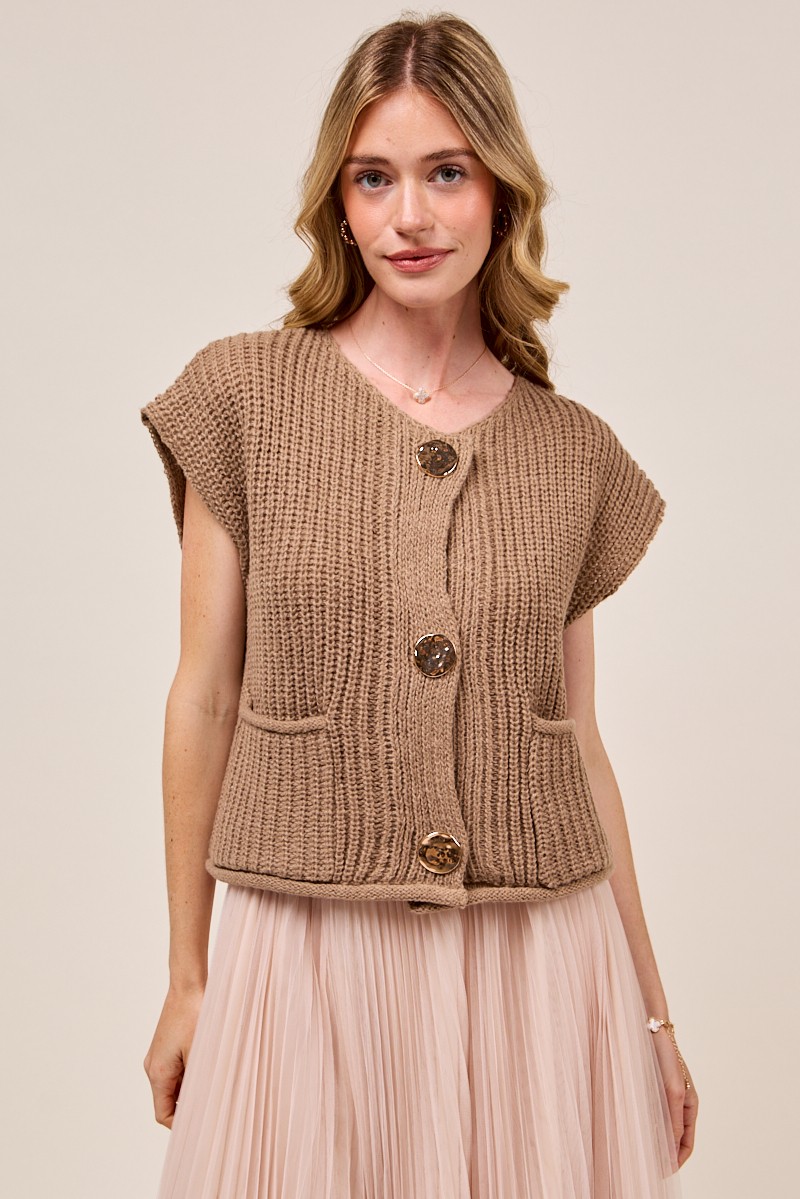 So Me Big Metal Button Front Sweater Vest