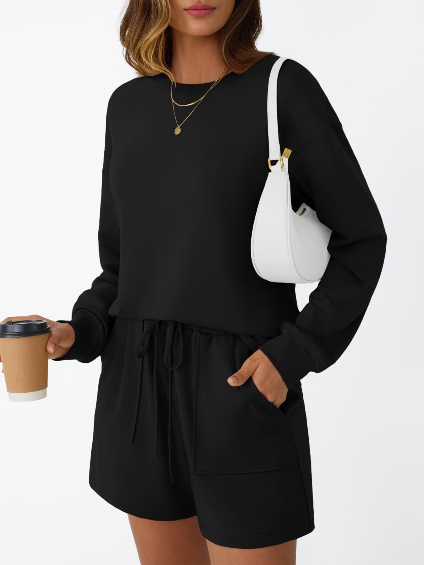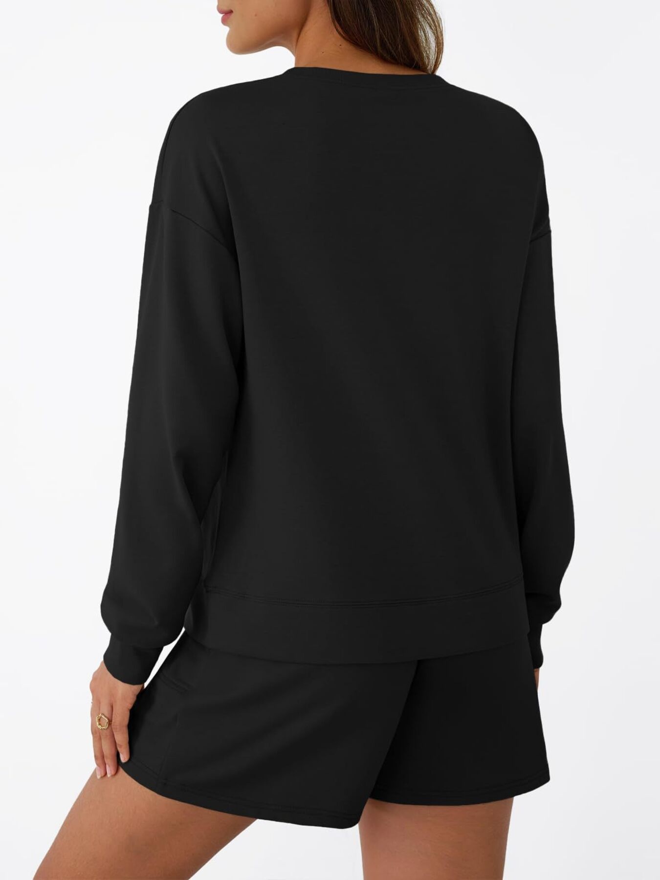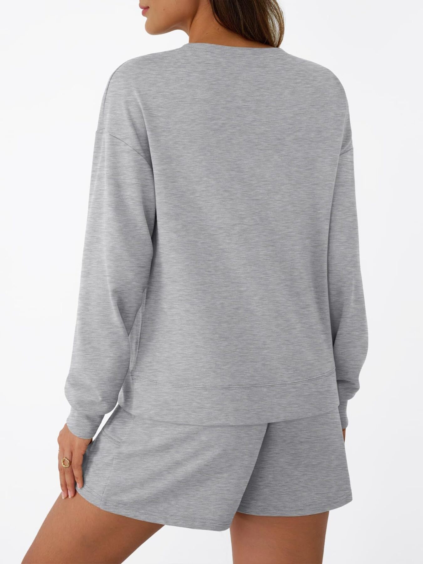 Round Neck Long Sleeve Top And Shorts Set