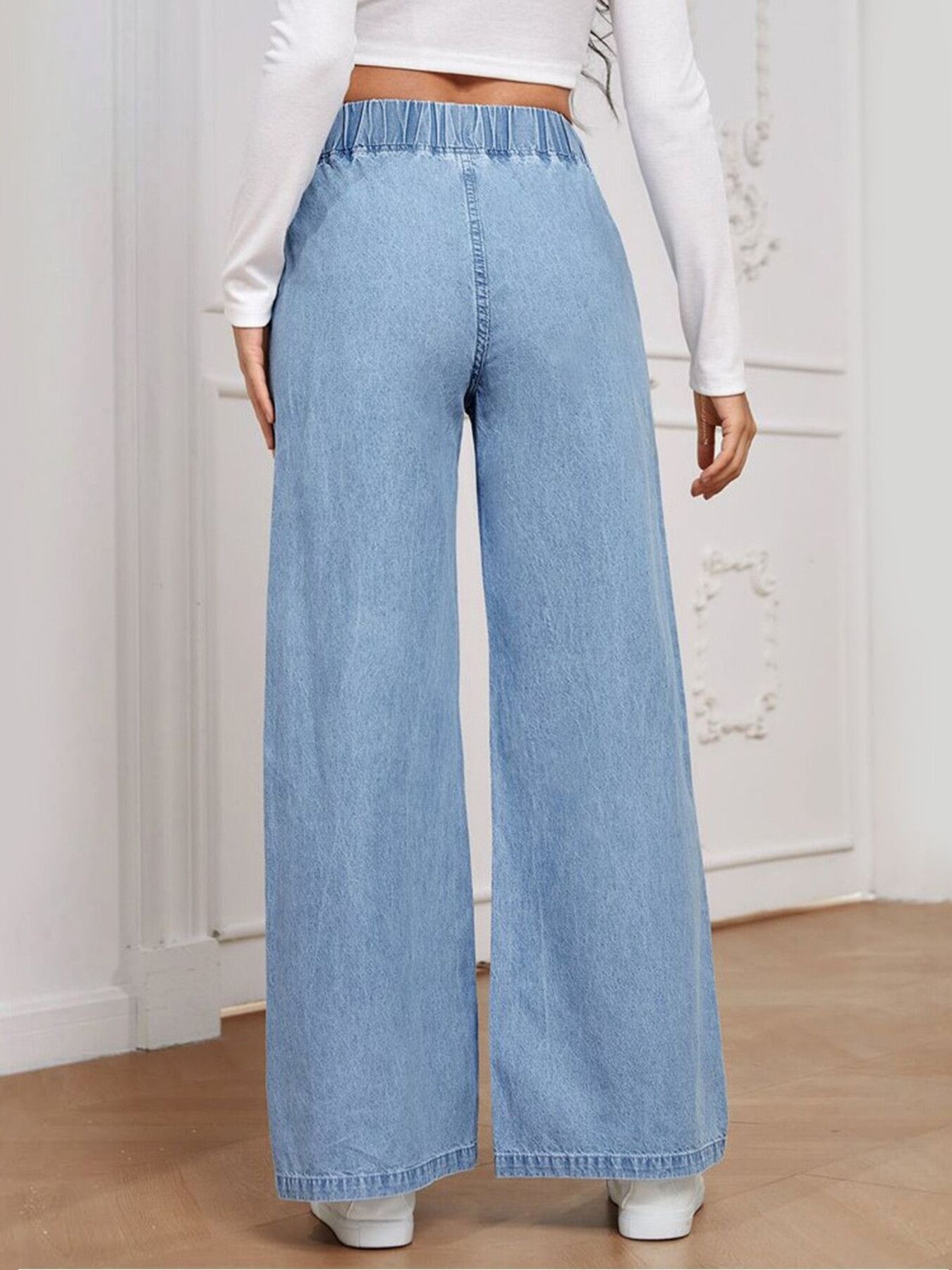 Elastic Waist Wide Leg Jeans