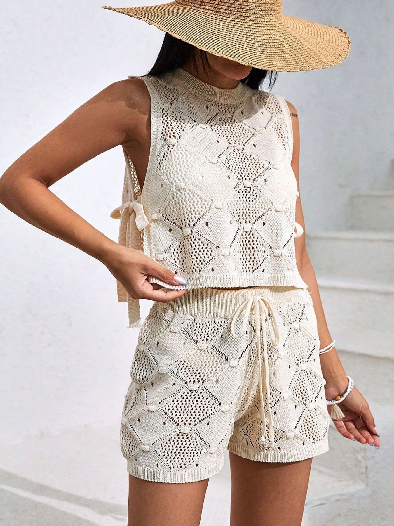 Diamond Pattern Sleeveless Top And Shorts Knit Set
