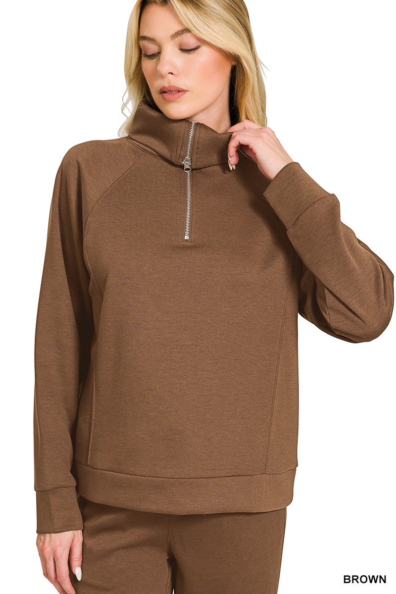 Zenana Scuba Half Zip Sweatshirts And Joggers Set