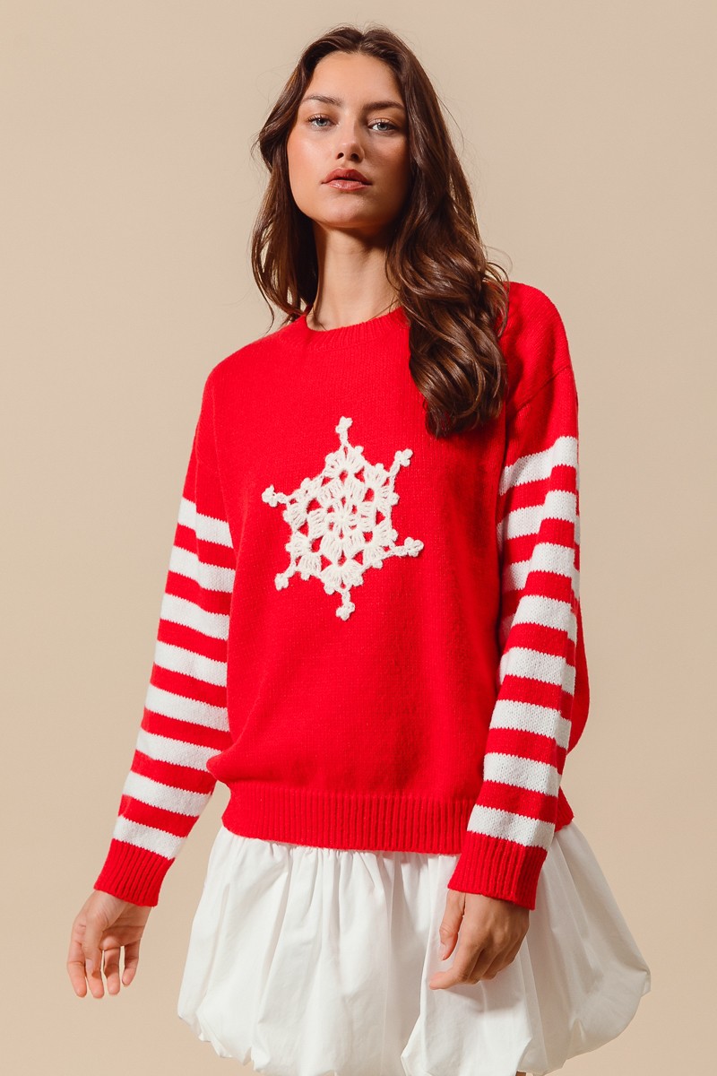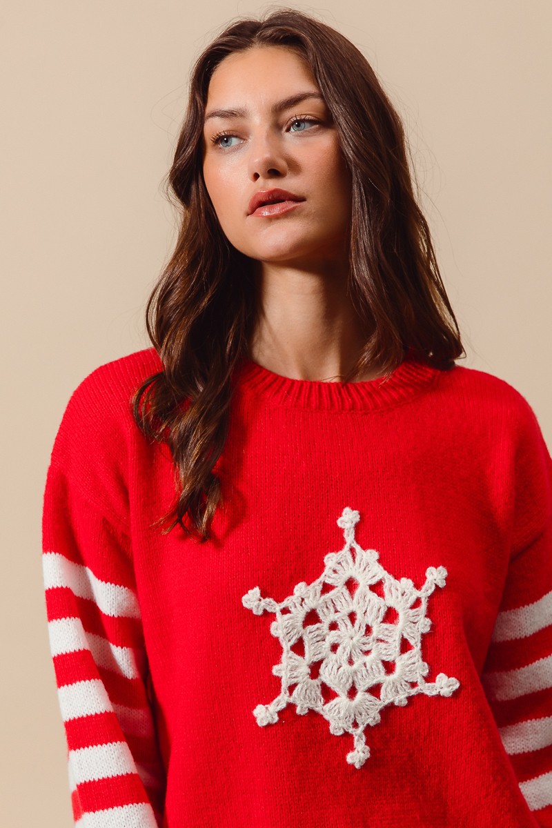So Me Christmas Snowflake Crochet Embellished Sweater