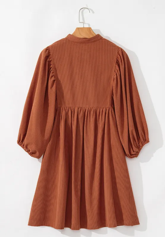 Corduroy Quarter Snap Three-Quarter Sleeve Dress