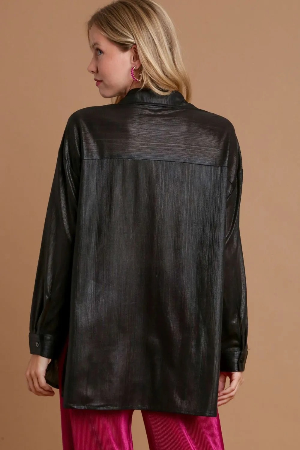 Umgee Side Slit Button Up Long Sleeve Shirt