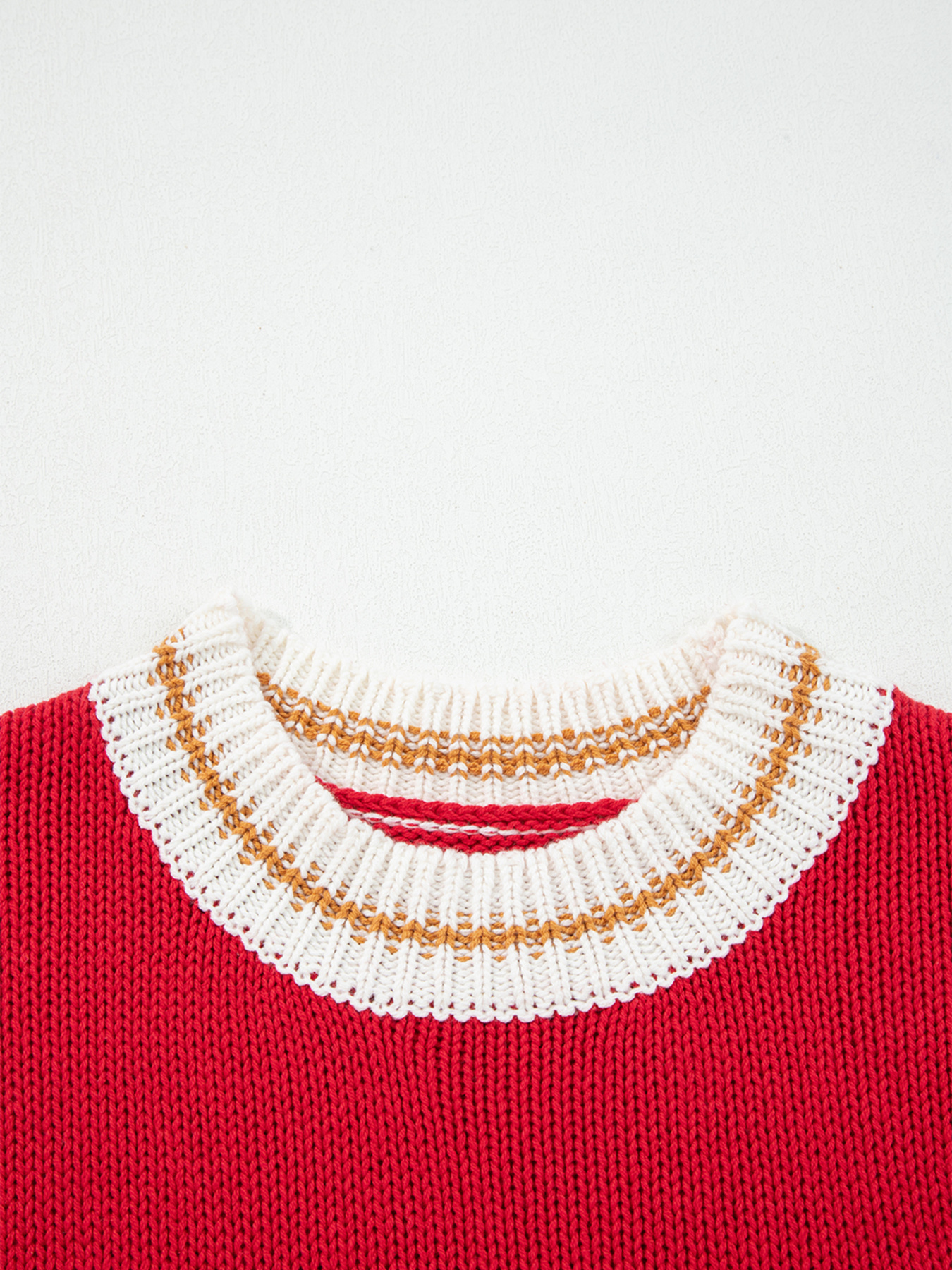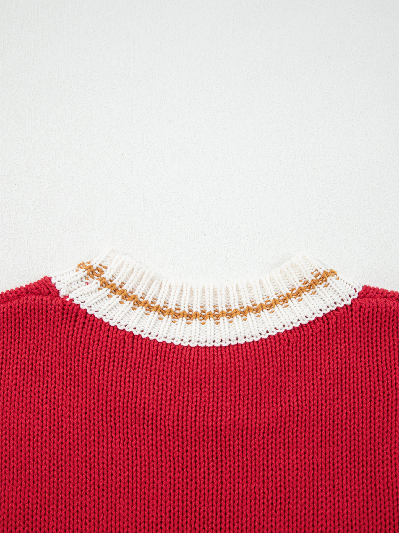 Merry Contrast Edge Drop Shoulder Christmas Sweater