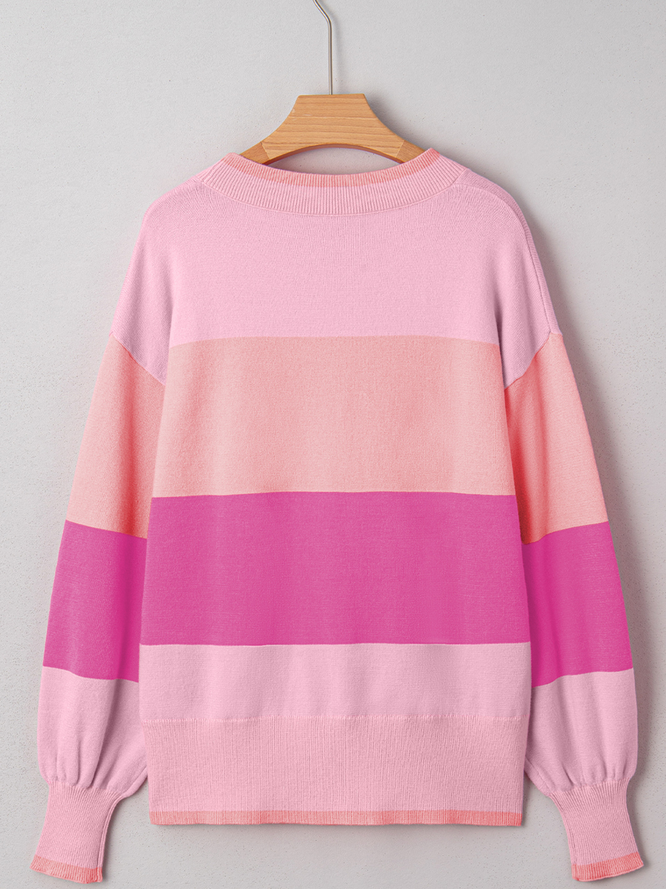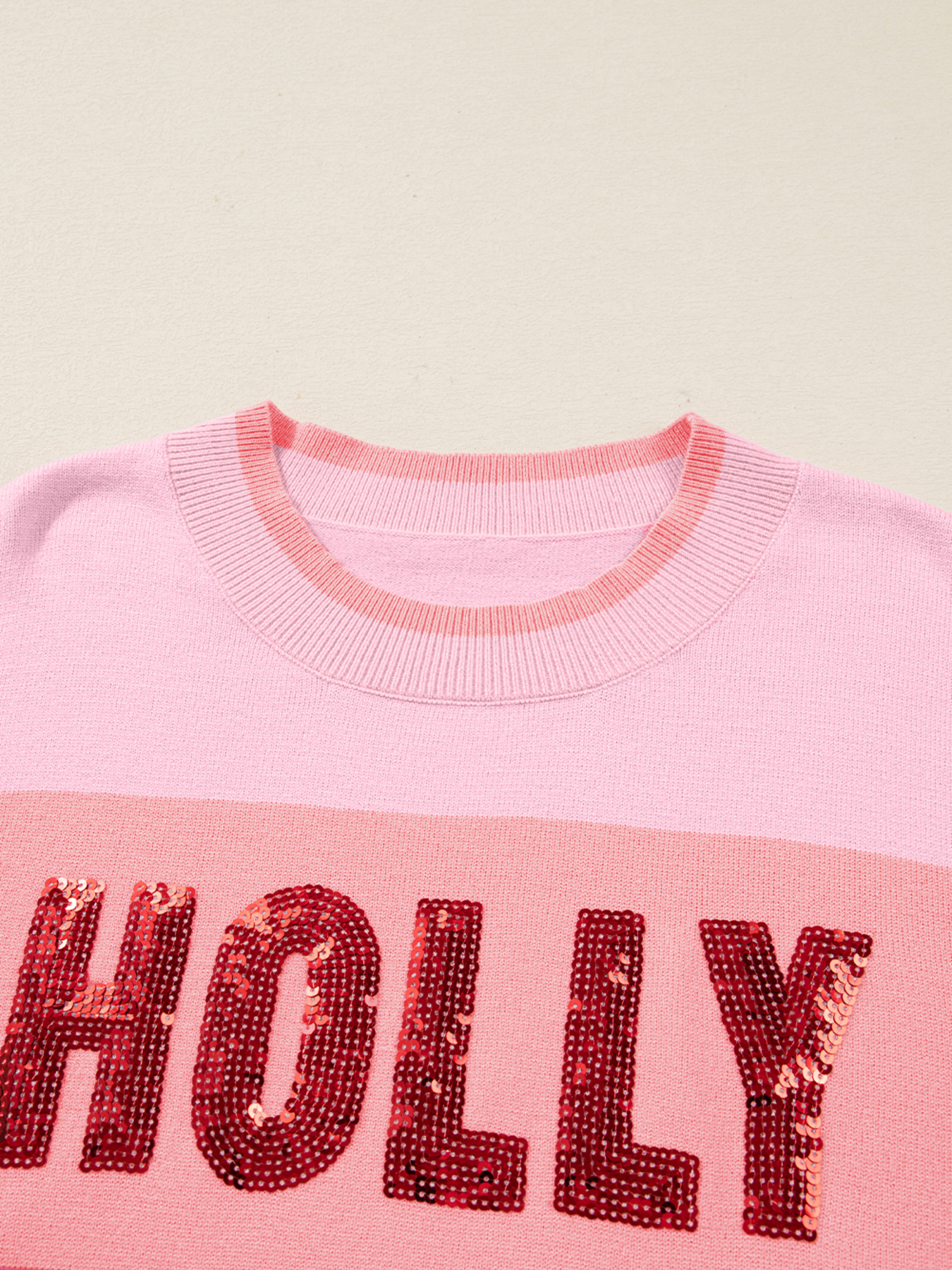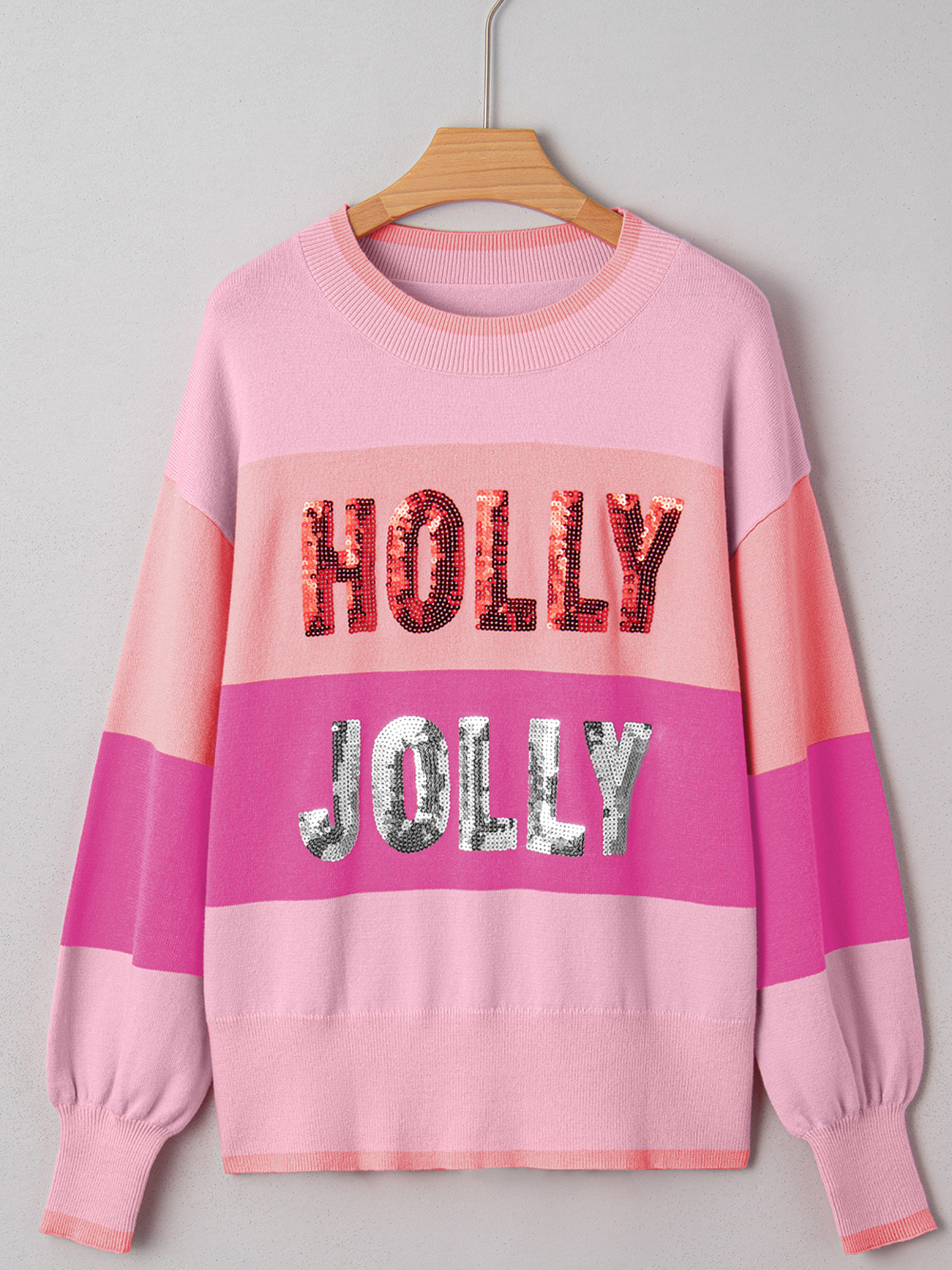 Sequined Holly Jolly Color Block Crew Neck Sweater