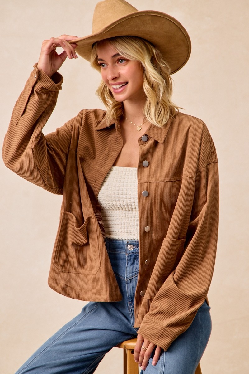 Bibi Corduroy Relaxed Fit Shacket With Back Pleat