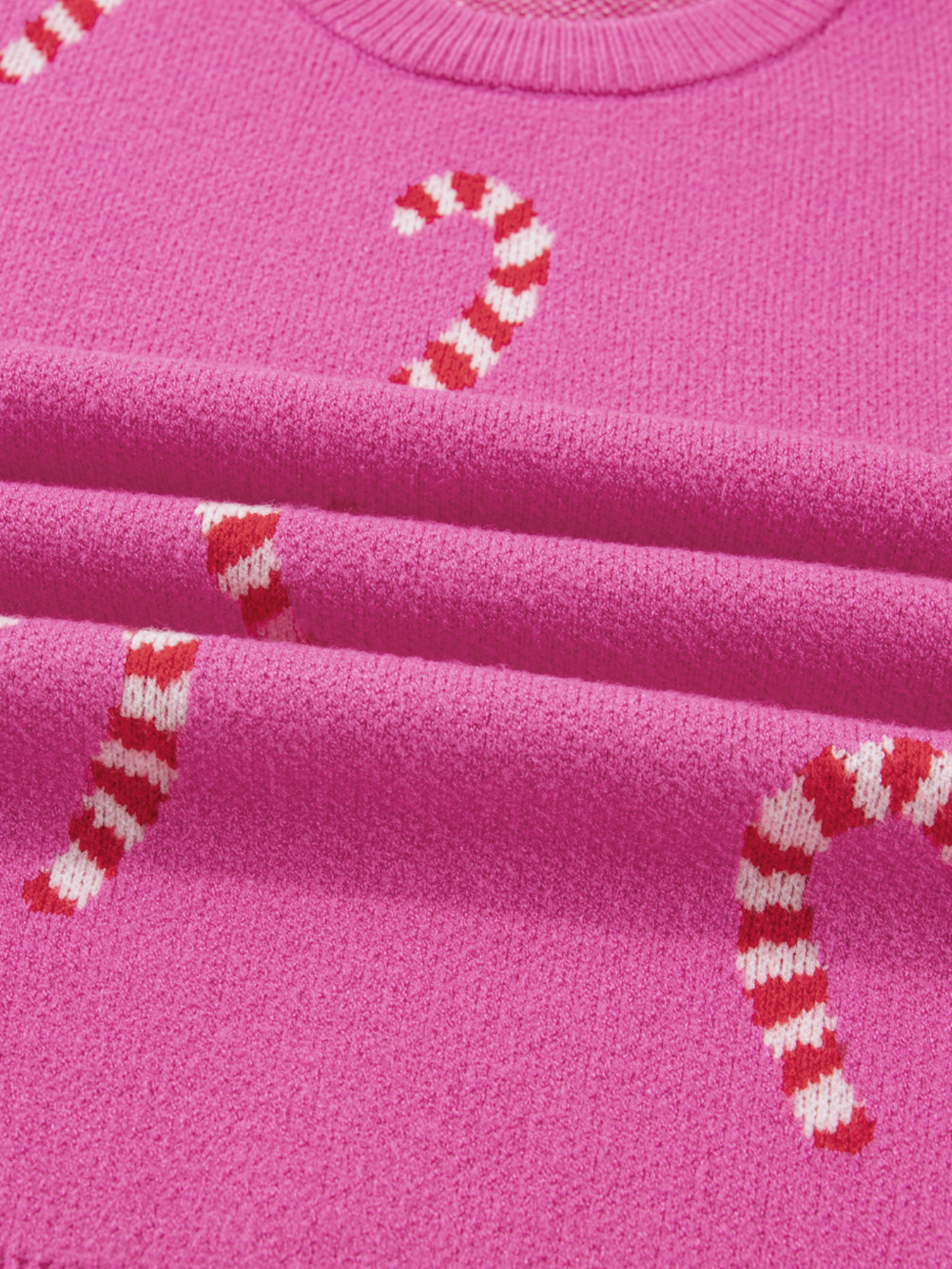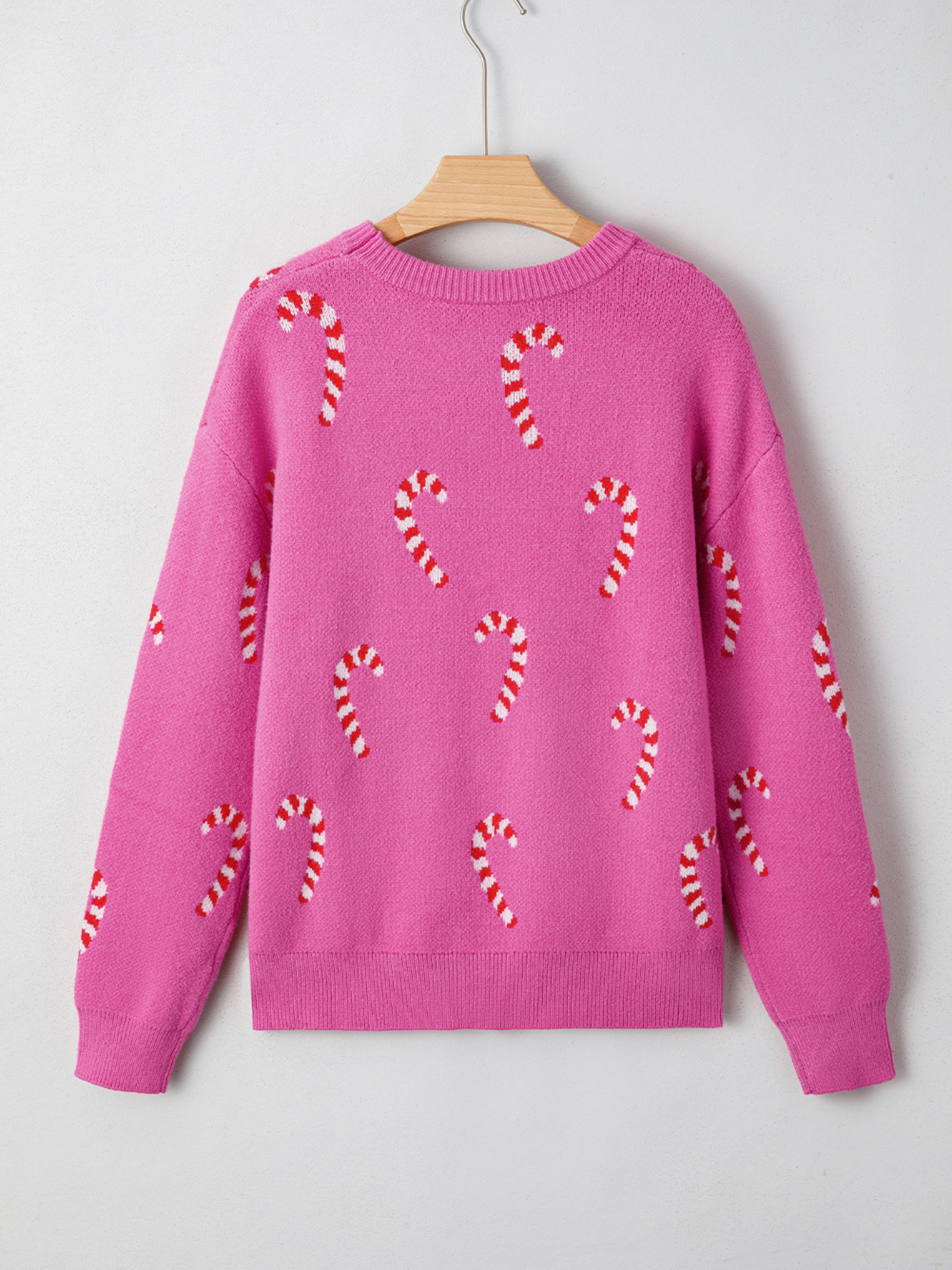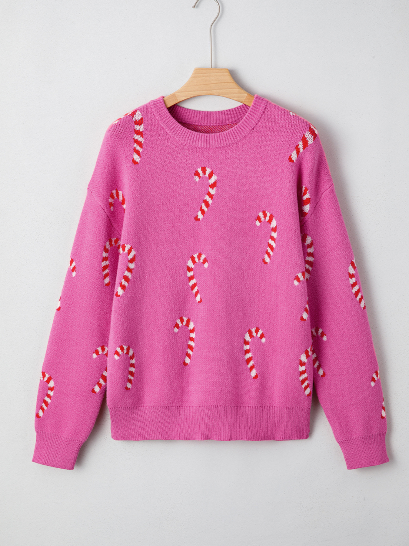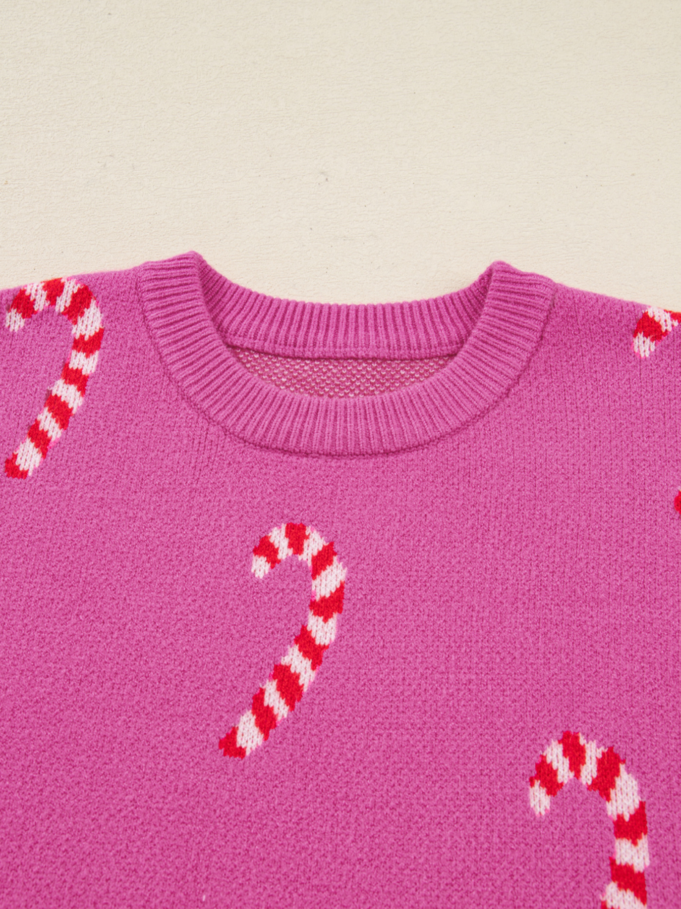 Christmas Candy Cane Holiday Drop Shoulder Sweater