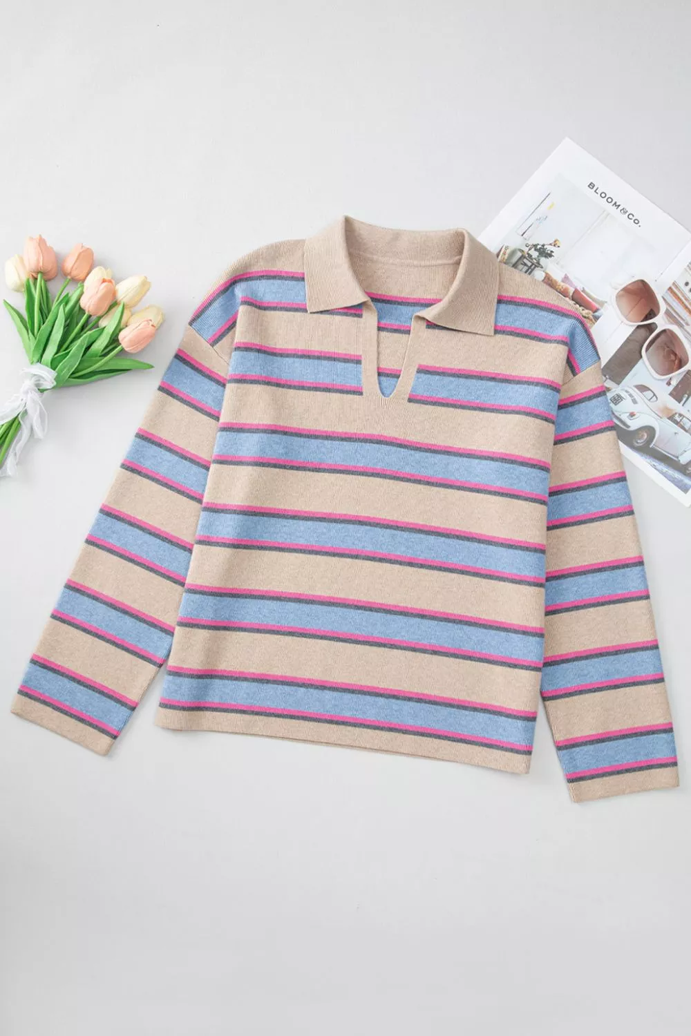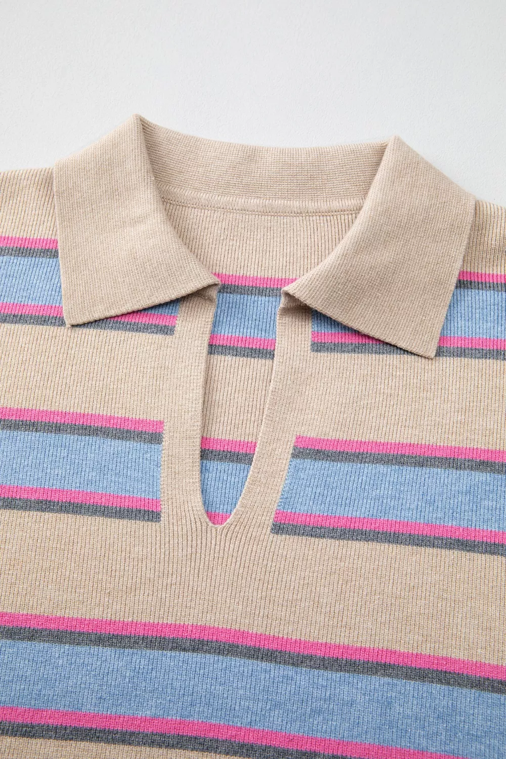 Striped Color Block Johnny Collar Sweater