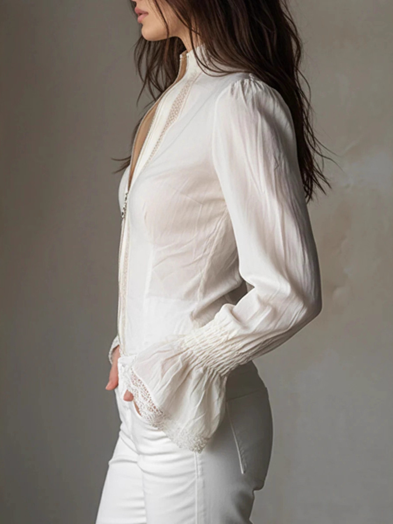 Lace Trim Zip-Up Shirt