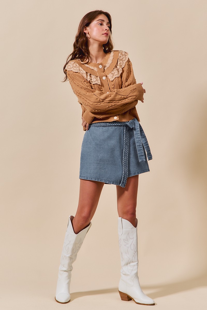 So Me Wrap Braided Trimmed Denim Skort