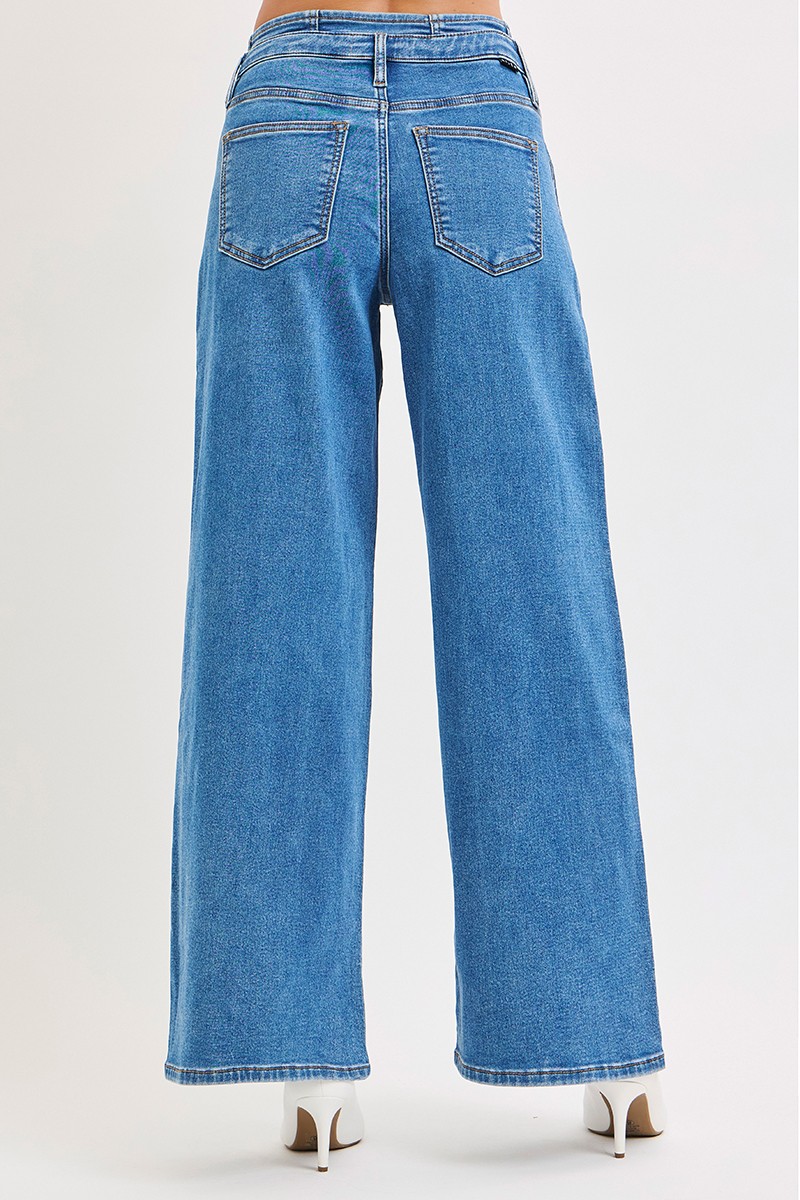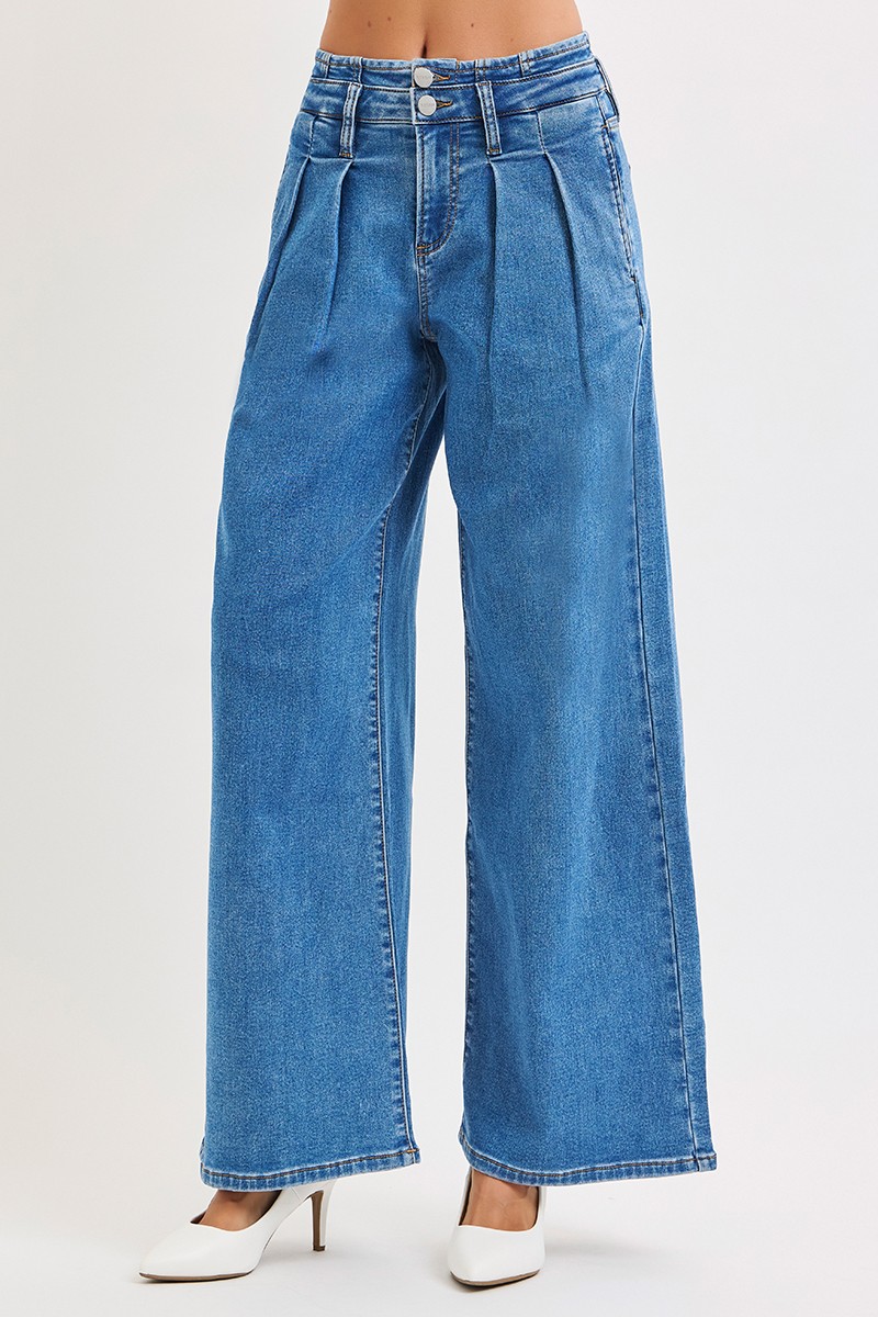 Risen Full Size Mid Rise Fit Wide Leg With Pleated Detail Jeans Plus Size
