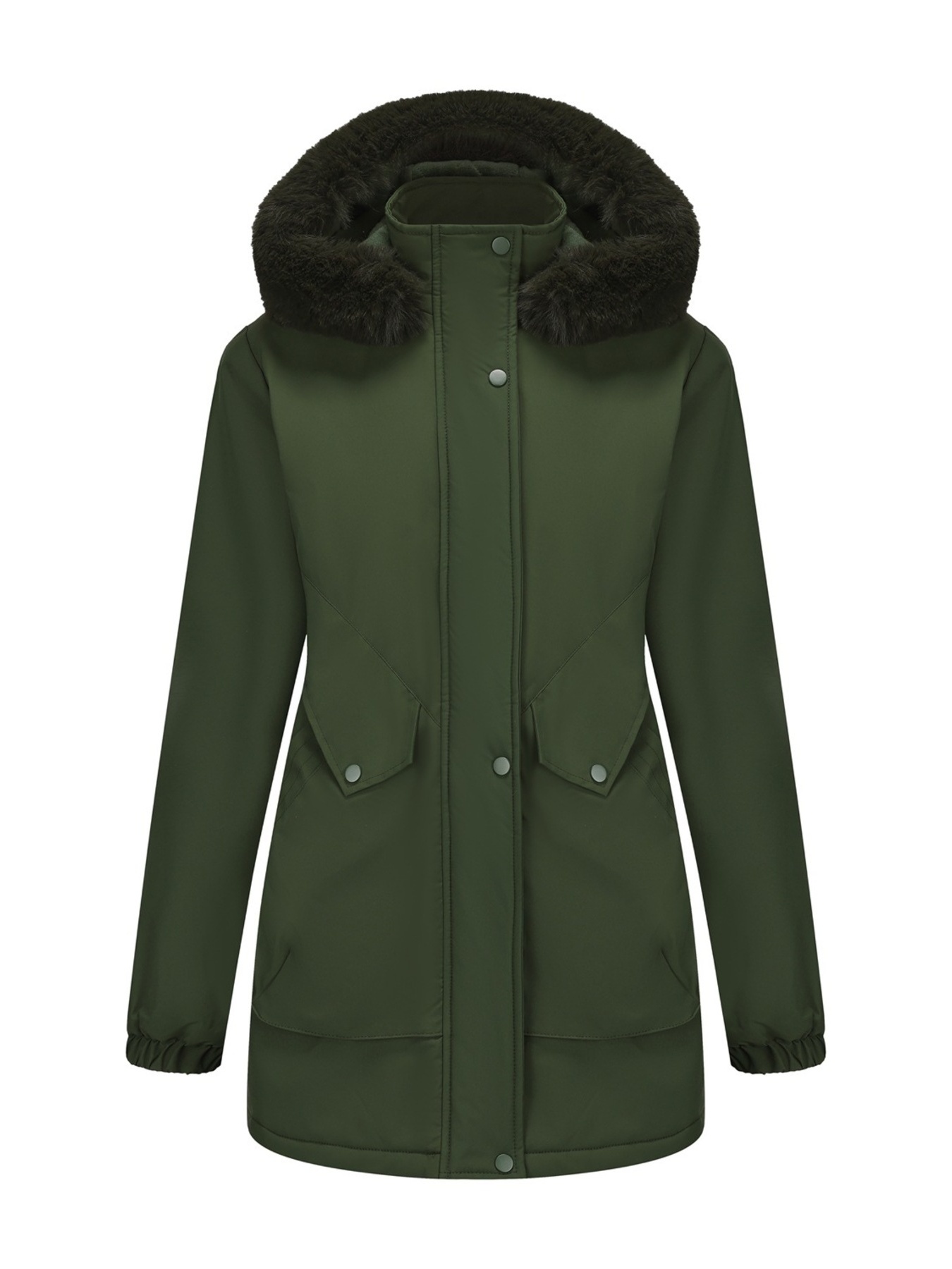 Full Size Fur Hooded Warm Winter Parka Outerwear Plus Size